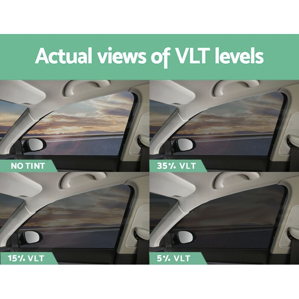 VLT stands for "Visible Light Transmission". Lower the VLT percentage is the darker it gets: