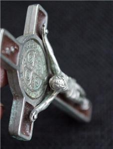 To your consideration this big highly detailed antique or vintage Pectoral Nun’s cross. The Crucifix has 3D Jesus and incripted INRI on it. Made of combination of white metal ,looks silver,and brown enamel. Measure app. 3” x 1.5”.Stamped Italy on the ring...