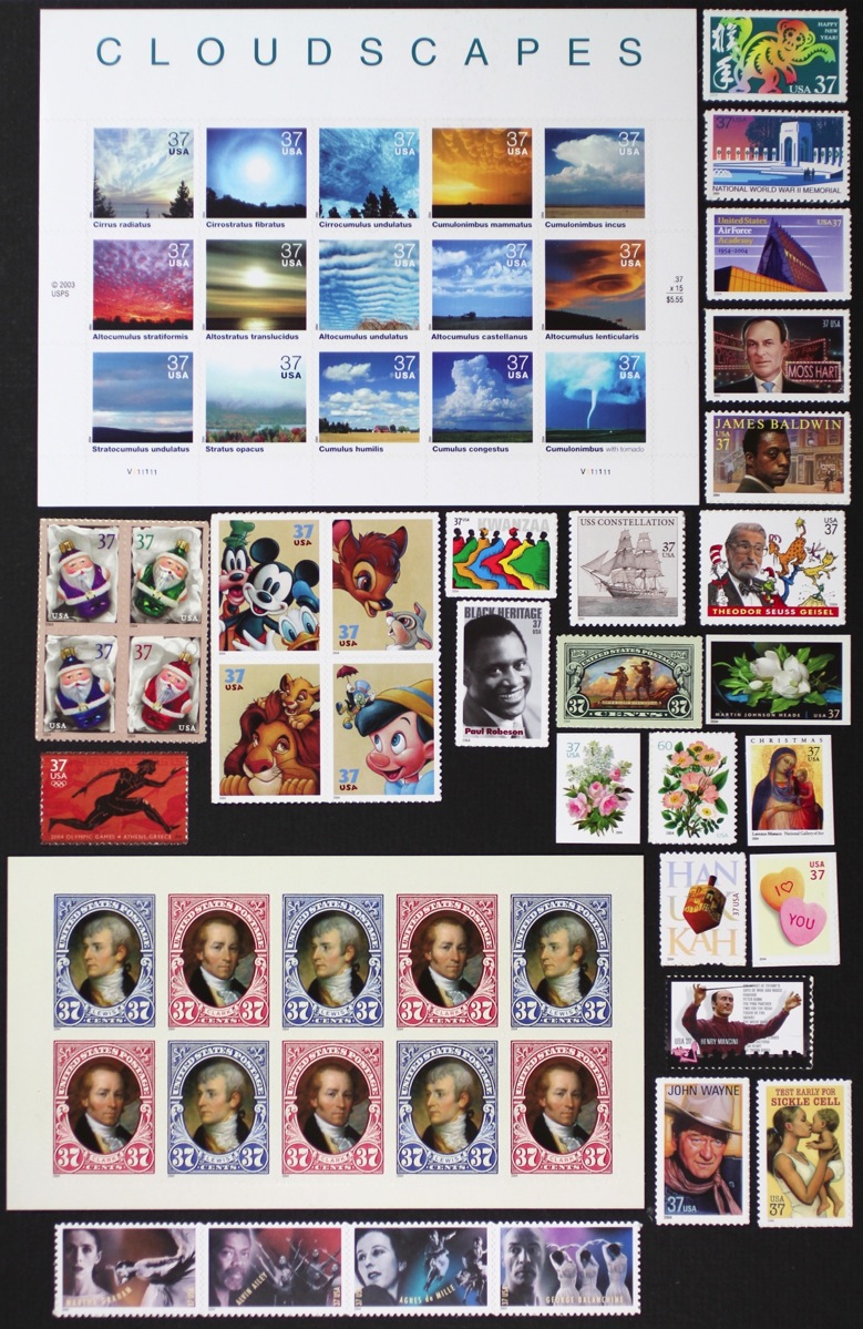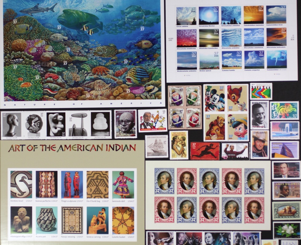 USA 2004 Commemorative Year Set 82 stamps including Cloudscapes, Pacific Coral Reef, and Art of the American Indian, Mint NH.