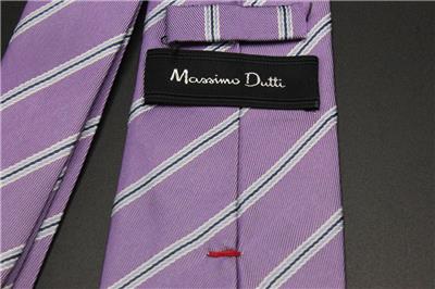 Brand: Massimo Dutti Size: 60" x 3.125" Condition: Excellent Condition. Description: Purple with light blue stripes. Material: 40% viscose, 40% polyester, 20% wool. All ties are carefully shipped out in a white tie box. Hassle free returns.