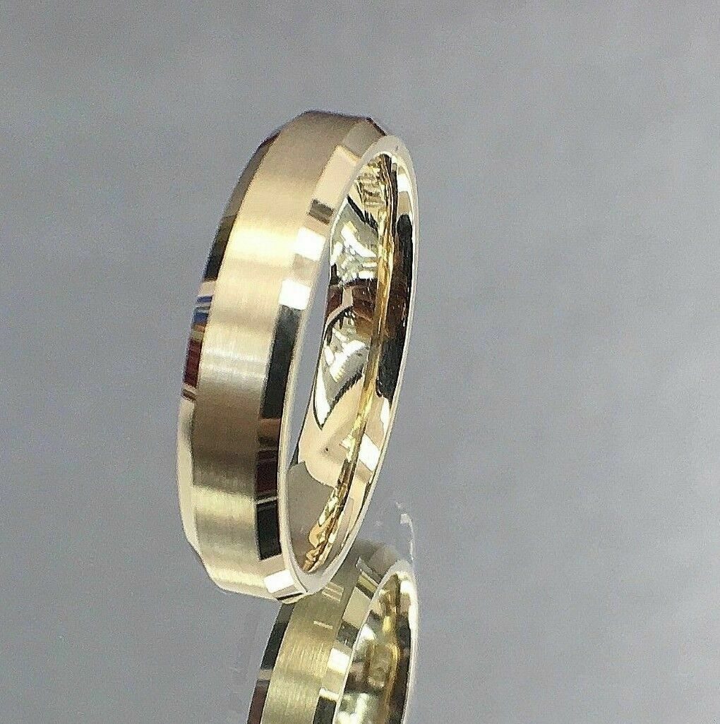 Men's 4mm 14k Gold Wedding Band Brushed Center High Polish Edge Comfort Fit