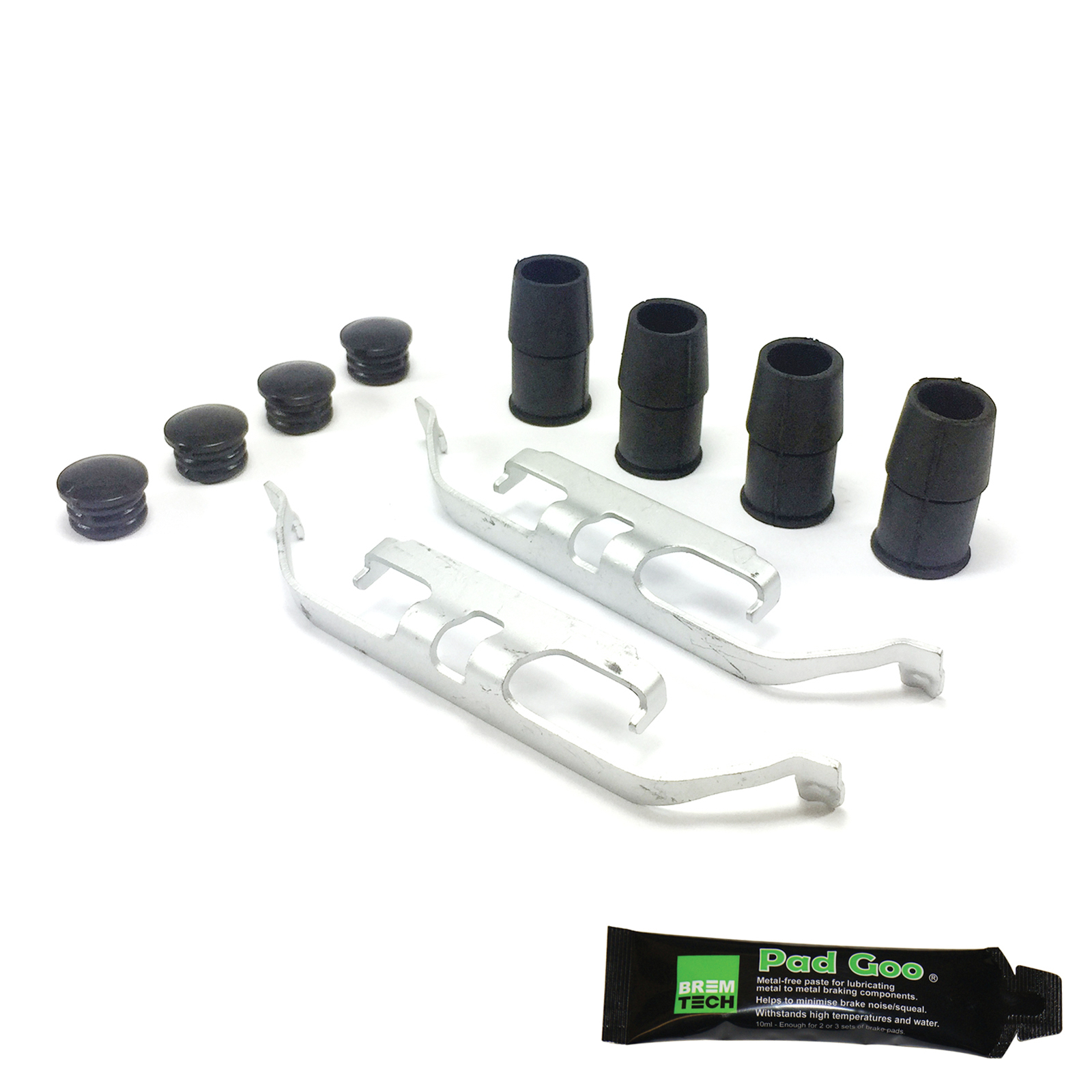 This is a Bremtech premium quality brake pad fitting kit / pad pin kit with parts for two brake calipers.