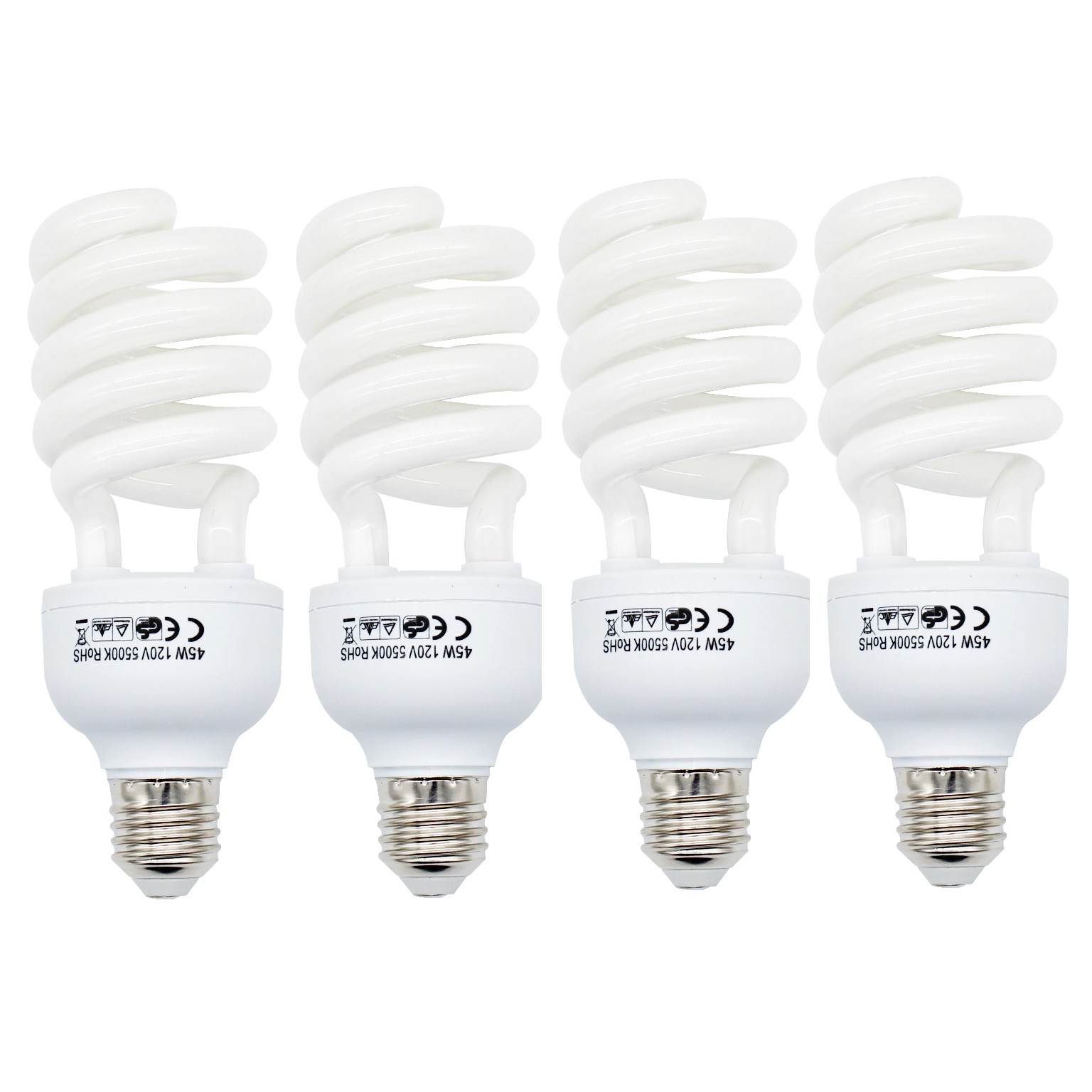 - Energy-Efficient - Eco-friendly and saves energy up to 80%. RoHS compliant and recyclable. The photography light bulbs come in a spiral design, making vents generate less heat to keep them cool.