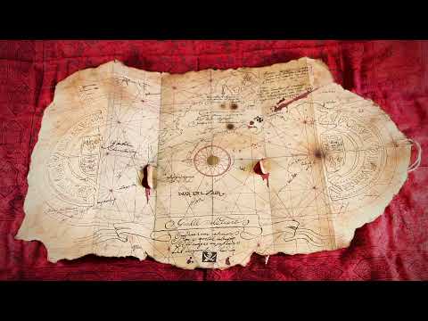 This large map measures about 13" x 21" (33cm x 53cm) and is printed on a heavy, textured paper just like the original prop. The aged cord on the right side of the map functions to hold the map shut when wrapped as a scroll. There are also many fold lines on the map, some to make it easier to carry, while others are attempts to find more of the clues hidden within the map itself.