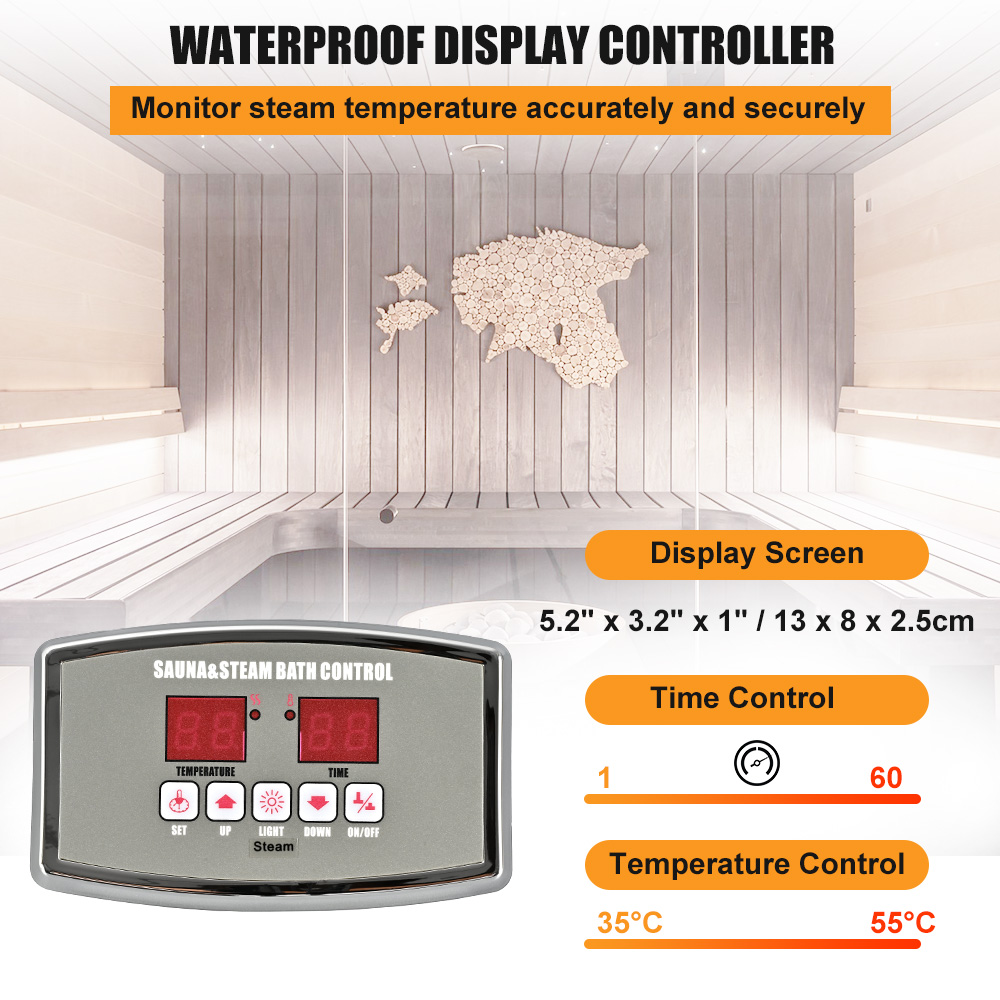 【Water-proof Display Controller】The display controller is water-proof and can be installed inside the steam room for controlling and adjusting, easier and more convenient.