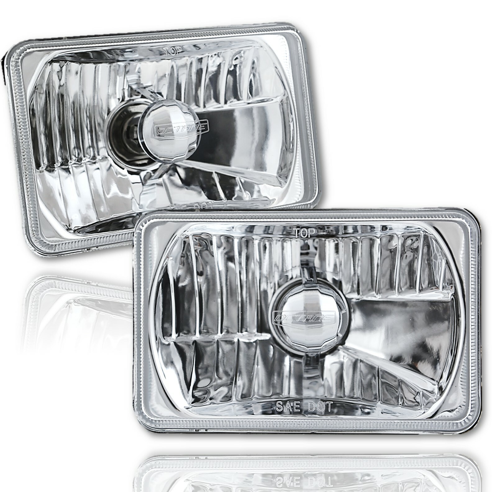 OCTANE LIGHTING - 4"x6" Crystal Clear Glass Lens / Metal Backside H4 Headlights - Pair