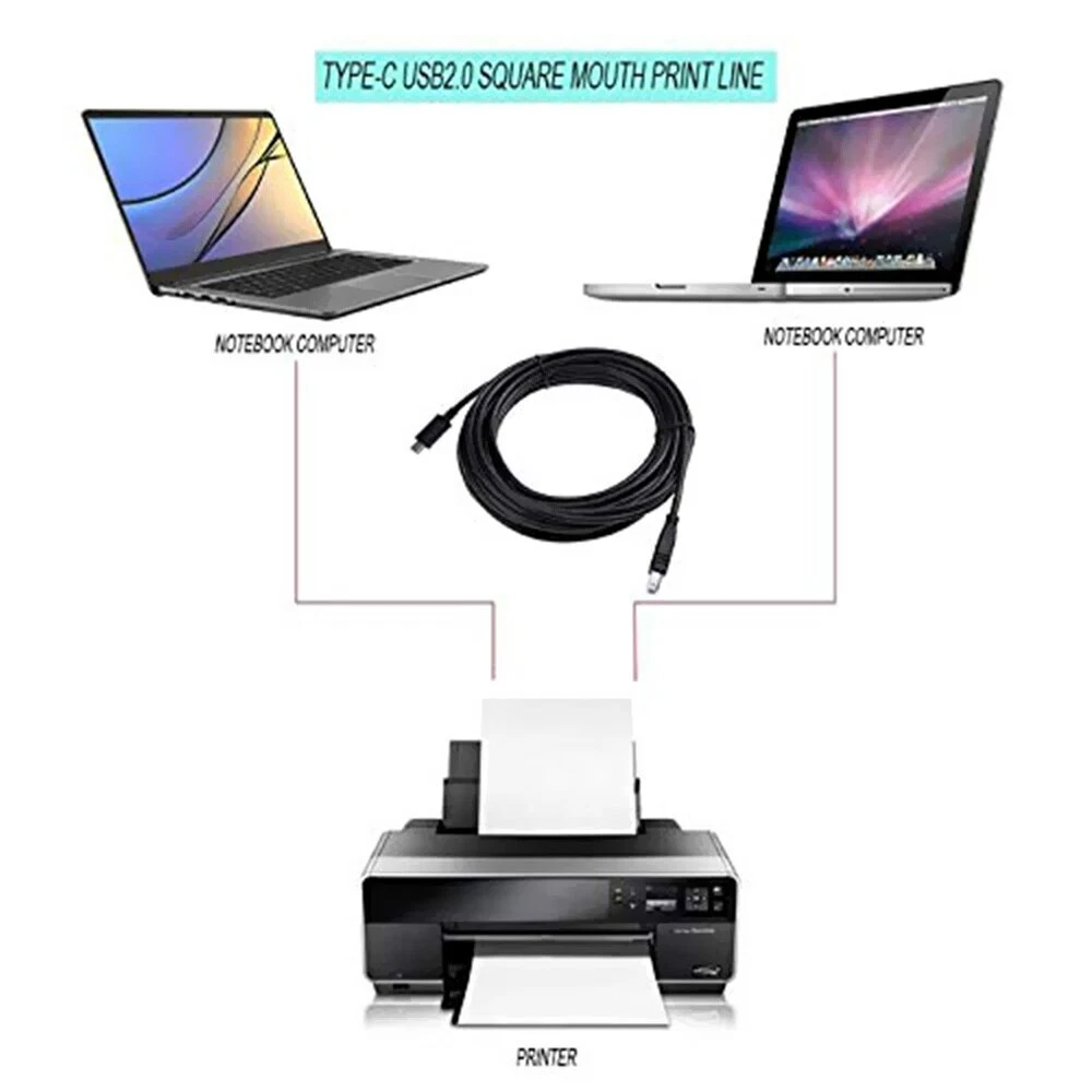 USB C to USB B Printer Cable Type C to USB 2.0 B Male Lead 1m-8m