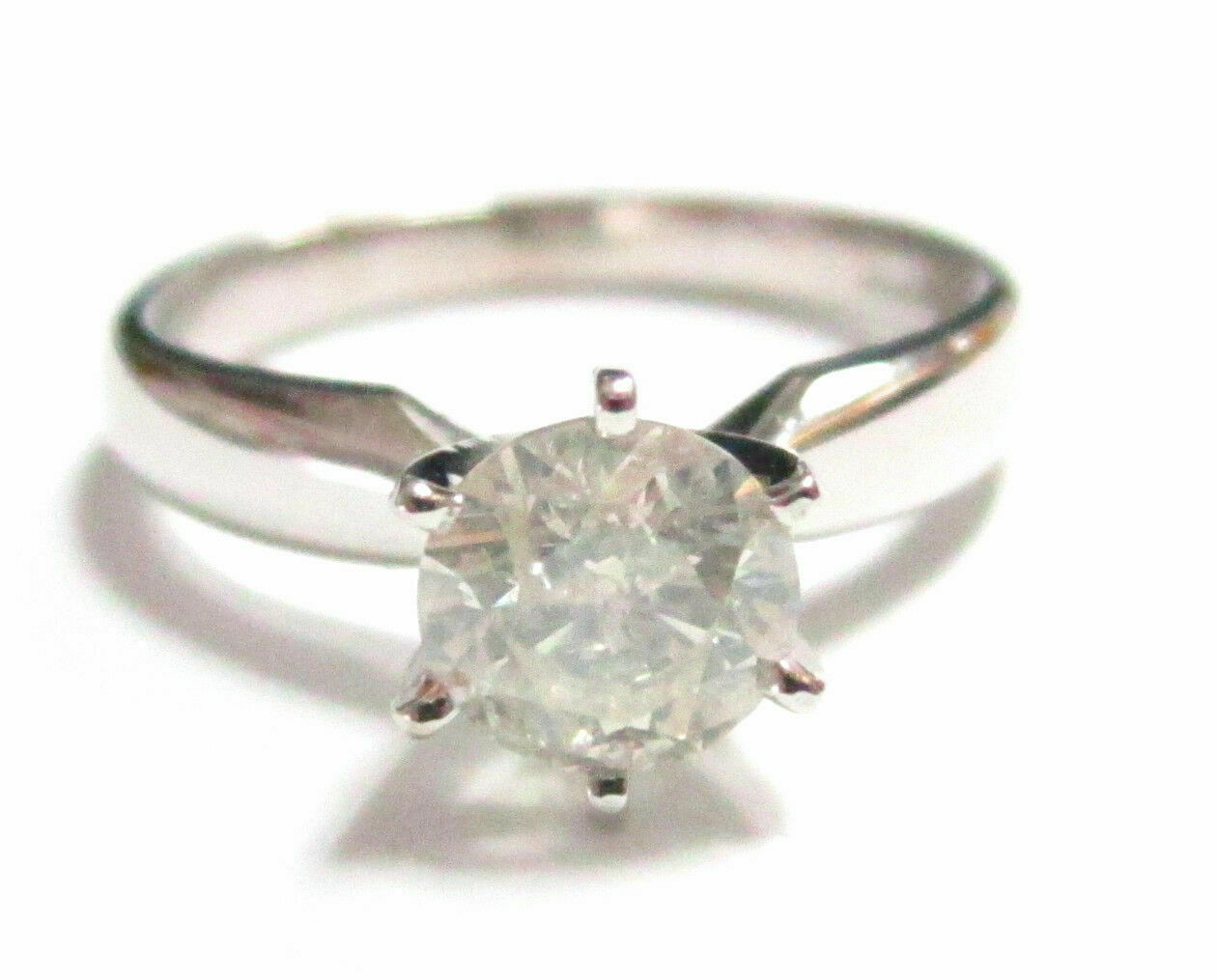 .88 TCW Round Cut Diamond Solitaire Engagement Ring Size 5.5 G I1 14k White Gold