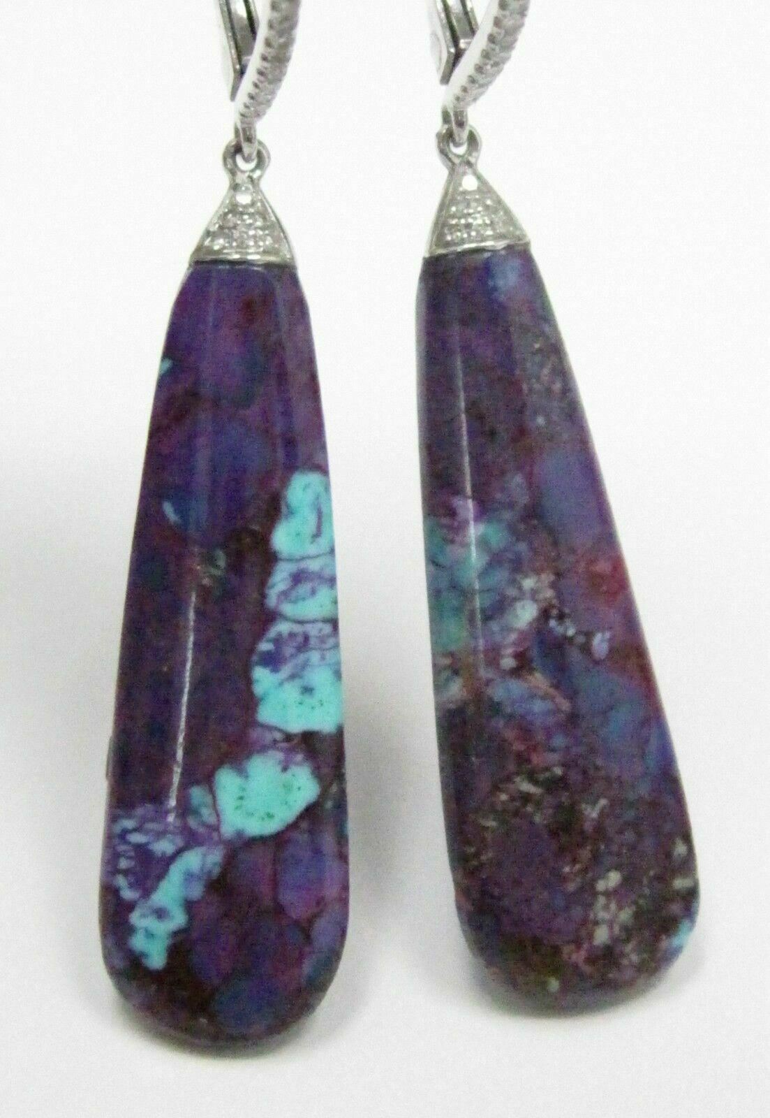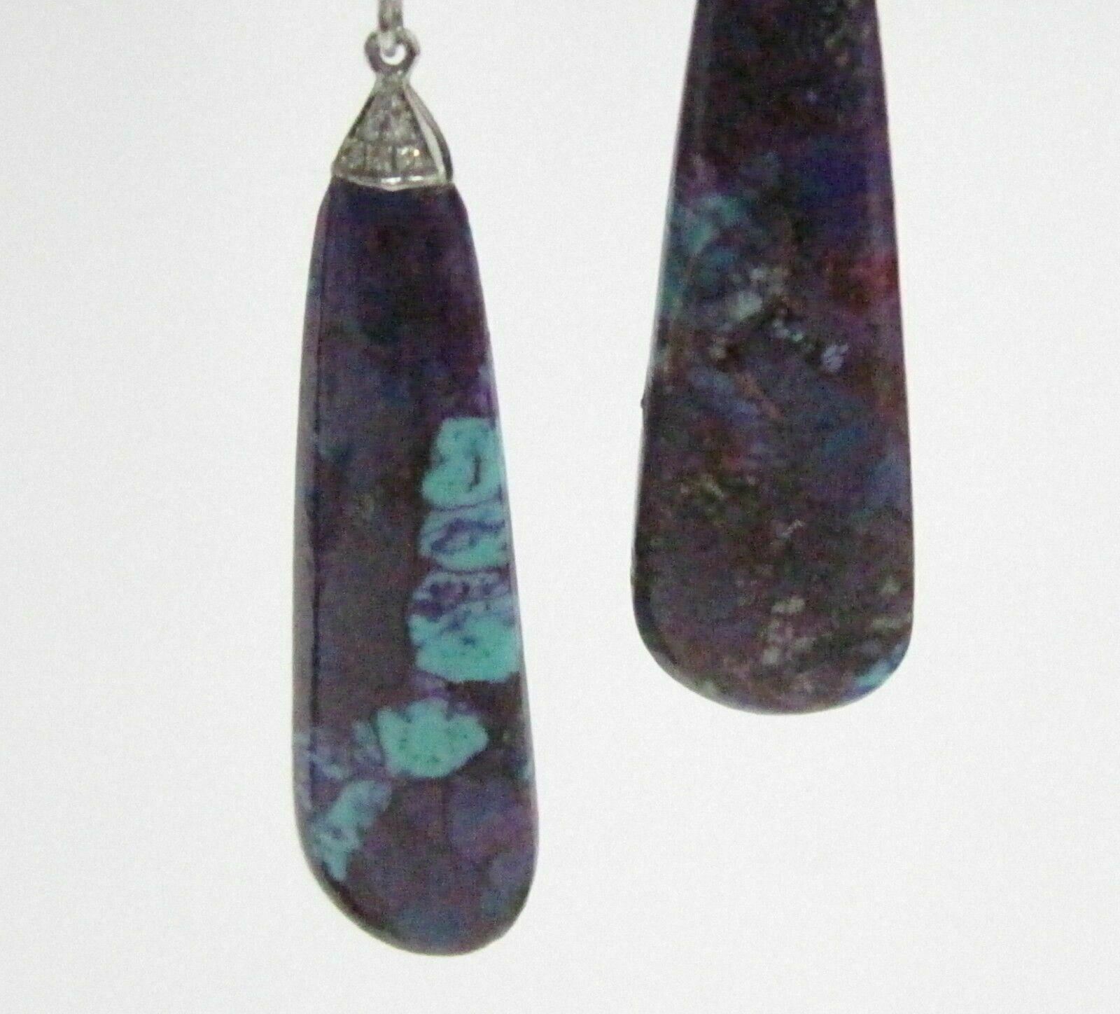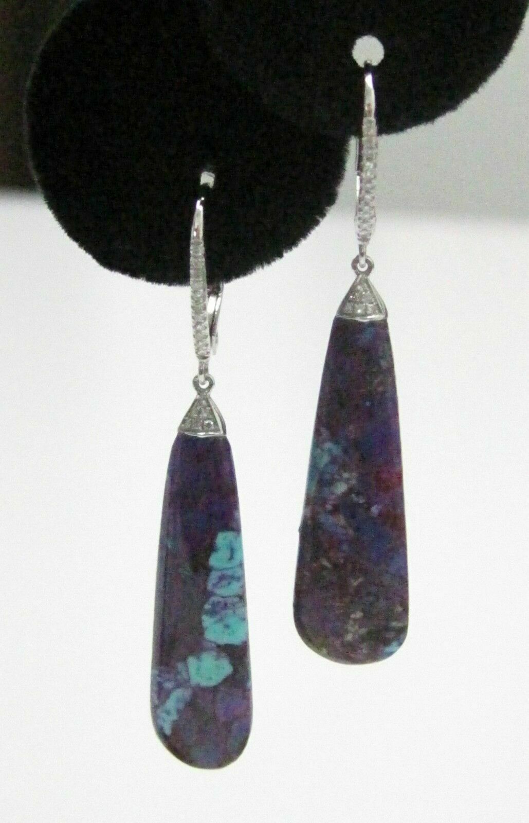 Main features are the natural pear elongated drop violet opal gems that weighs 12.06 carats