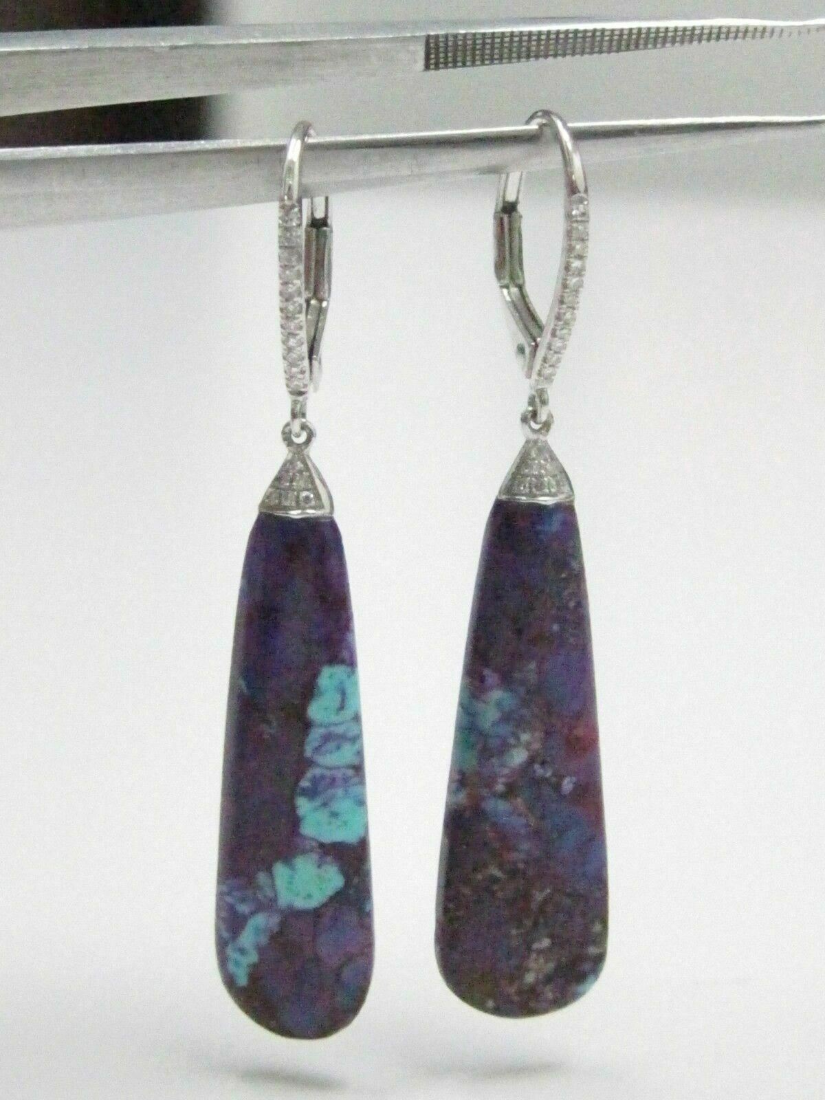 12.21 TCW Pear Elongate Opal Diamond Chandelier/Dangling Earrings 14k WG