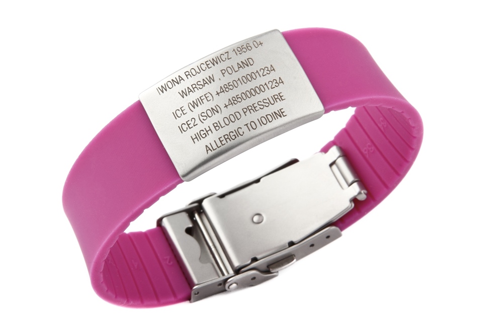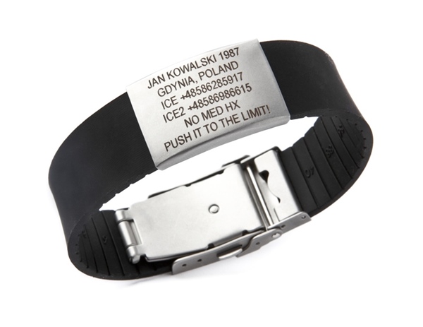 The Elite Bracelet gives users 6 lines of text (free engraving) in which you can put the most important personal information. Data will be laser engraved on a badge made from stainless steel, making the text very durable. Our Elite bracelet is shipped inside a metal box which makes it perfect as a gift!