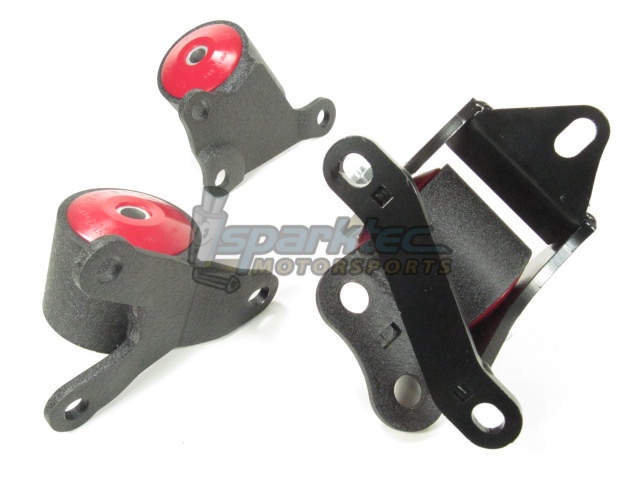 Mount Kit for 1996-2000 Honda Civic. Designed to fit all B/D series motors. An alternative to the mediocre oil filled factory mounts. Soft urethane stiffness for the street. Unique no-tear vibration minimizing bushings. CAD/CAM Designed. Stress Analyzed. Lifetime warranty. All hardware is included.