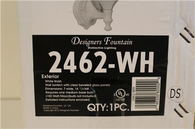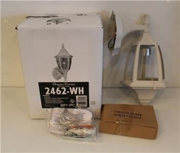 -NIB Designers Fountain 2462-WH 1 Exterior Light 7" Cast Aluminum Wall Lantern Includes Everything pictured