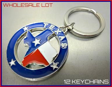 - 1 DOZEN (12 pieces) MAP OF TEXAS SOUVENIR KEYCHAINS EXACTLY AS PICTURED.