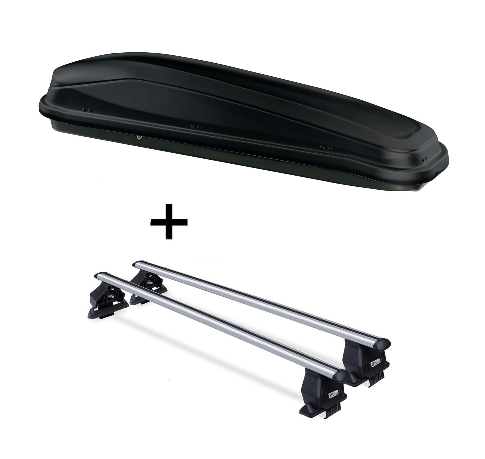 Skibox JUEASY300 300Ltr schwarz + Dachträger Menabo Tema VW Jetta IV (Kombi 5 Türer) 1998-2004