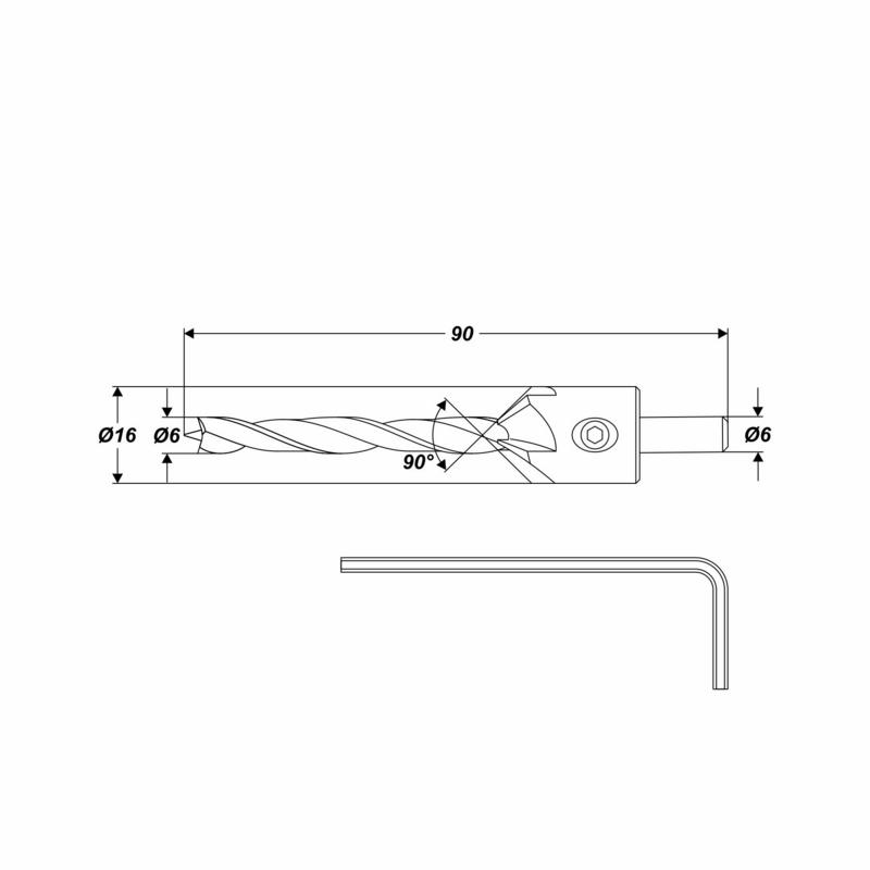 1 x Holzbohrer mit 90° Senker [Ø 6 mm]