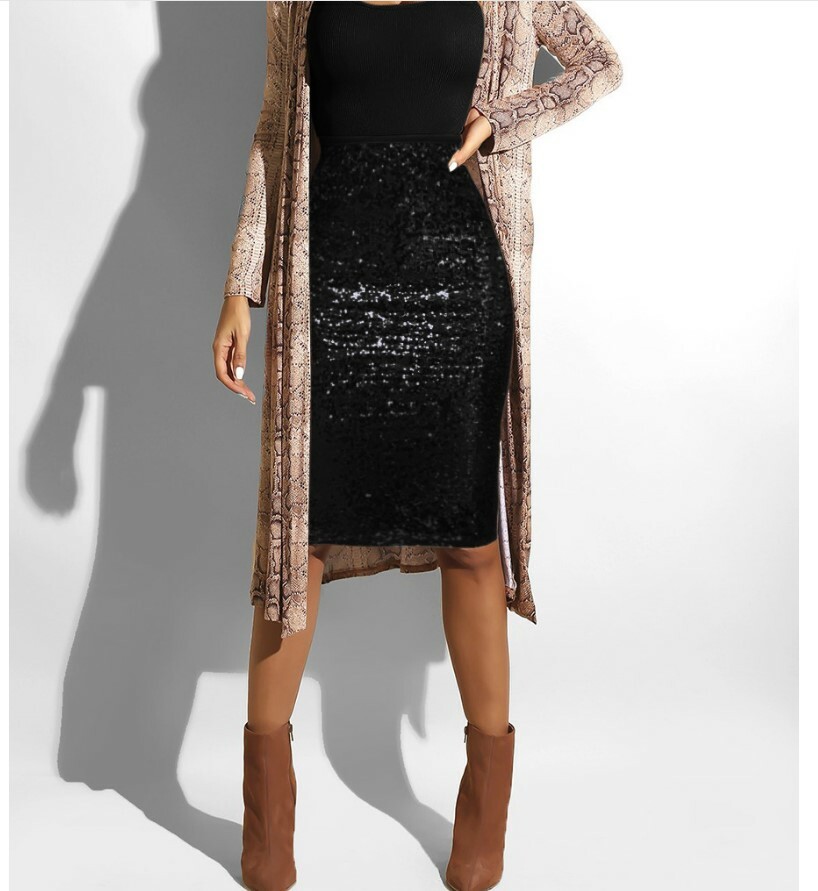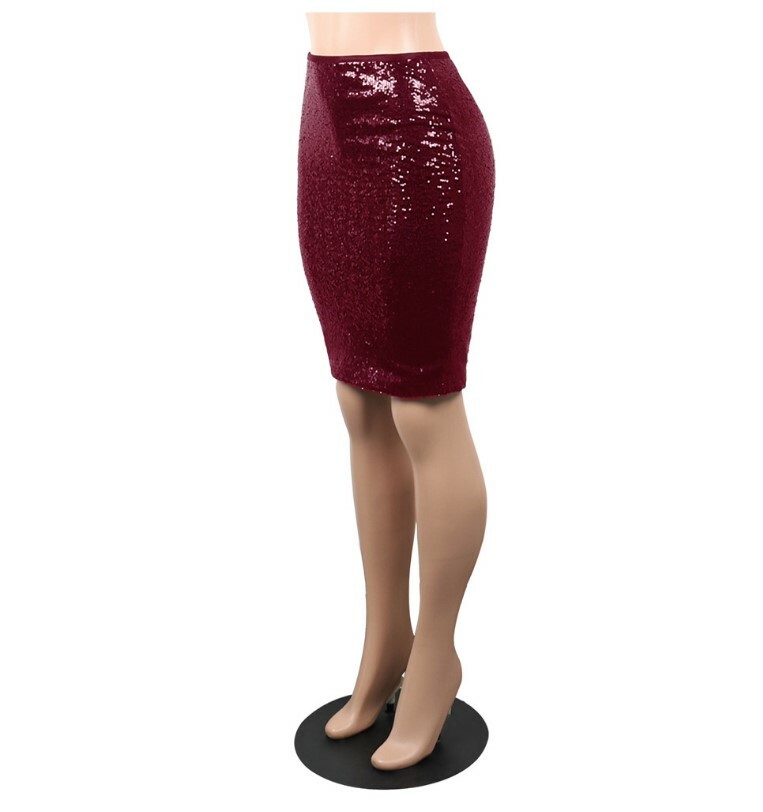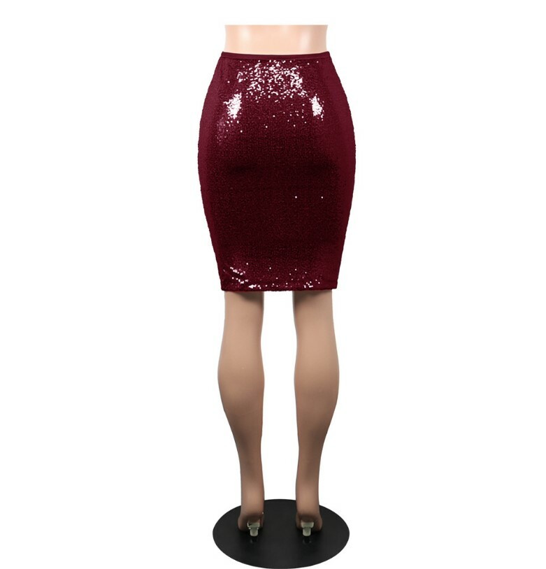 USA Women Bling Sequins Bodycon Pencil Knee Length Slim Skirt With Lining