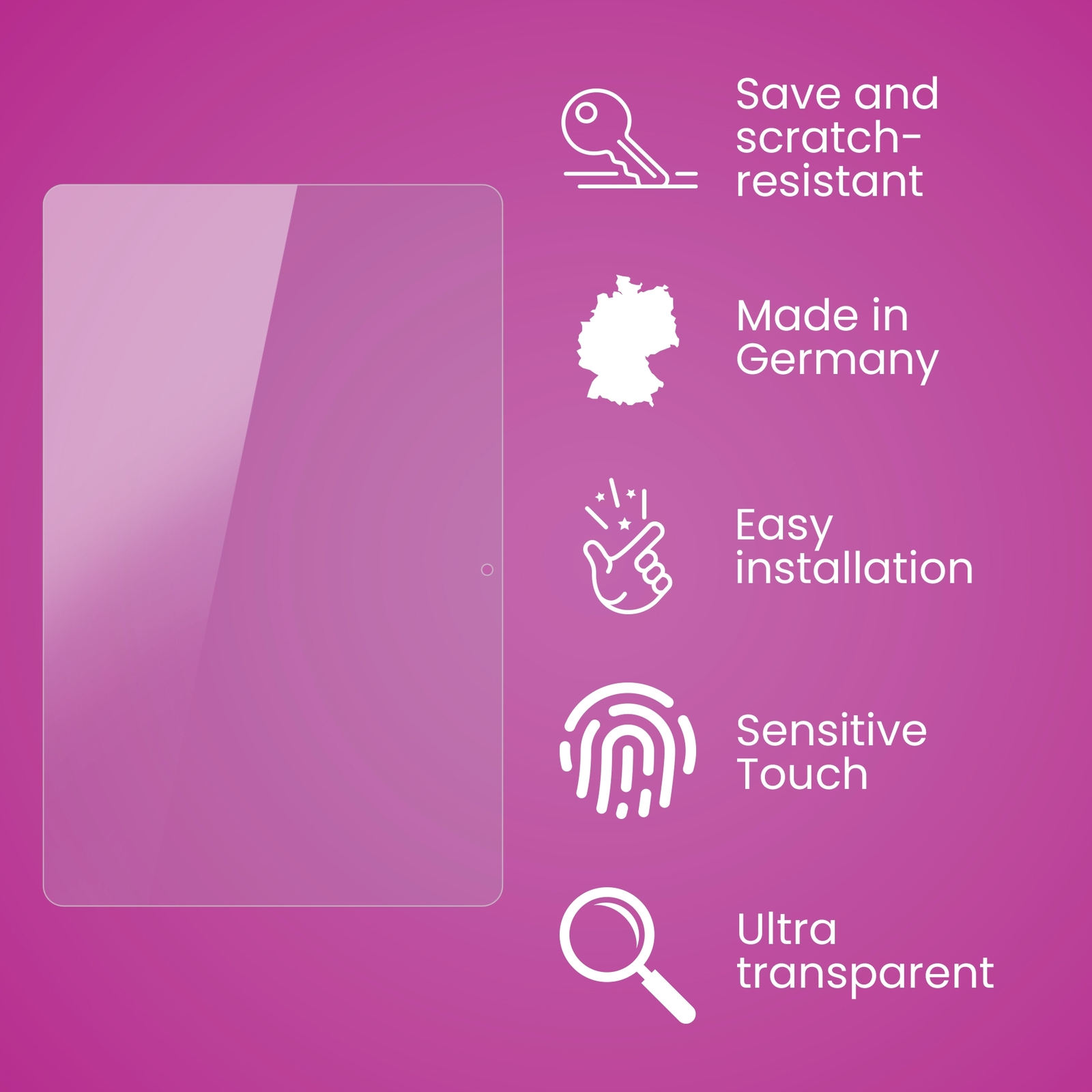 The sophisticated design provides an optimal look and feel for your display. With a light transmittance of almost 98%, the film remains virtually invisible and preserves the aesthetics of your device.