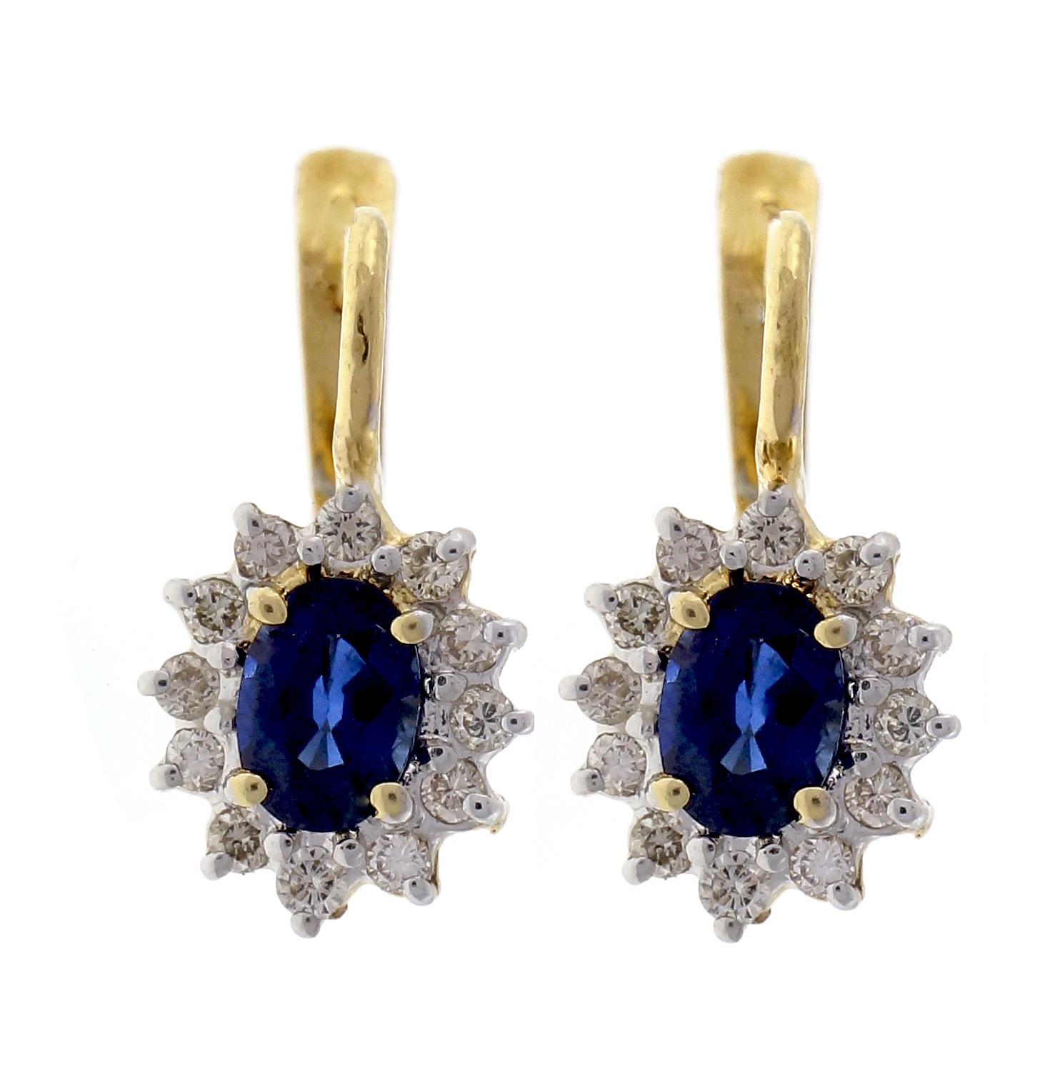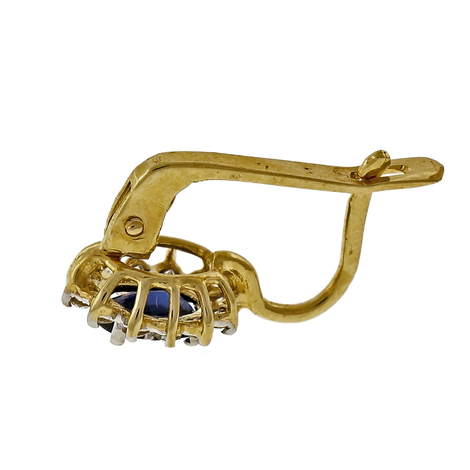 Vintage 1970 14k Yellow Gold 1.20ct Sapphire Diamond Earrings
