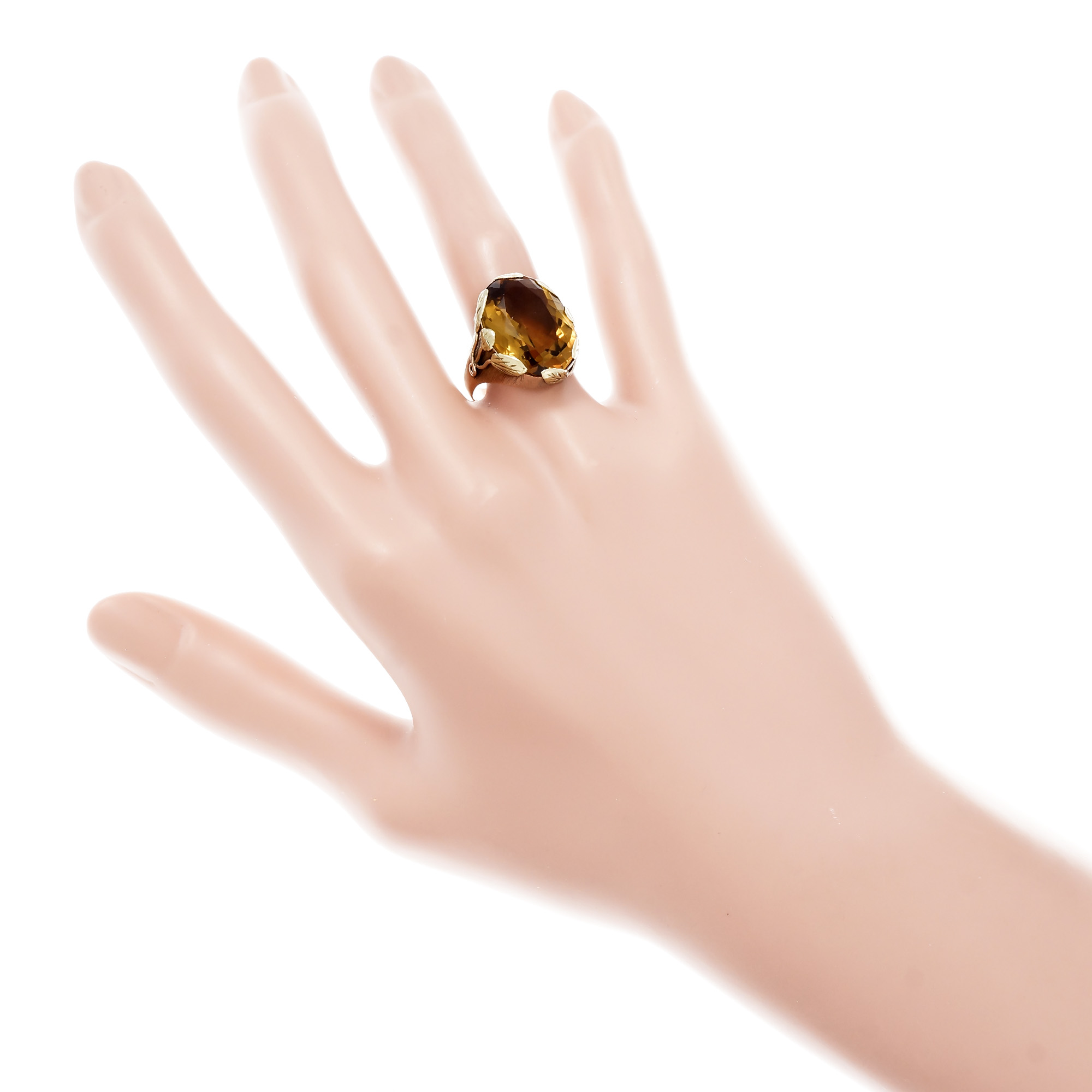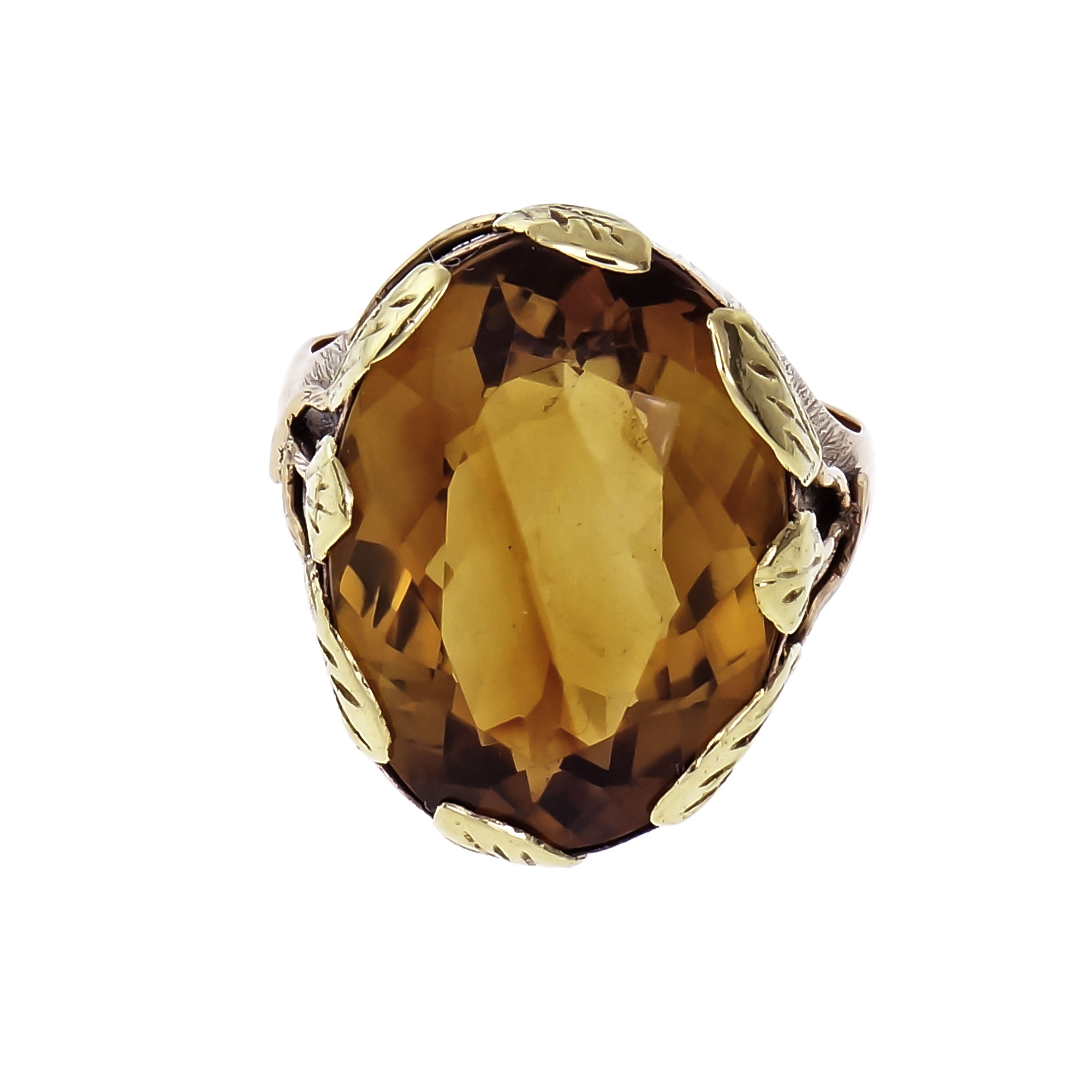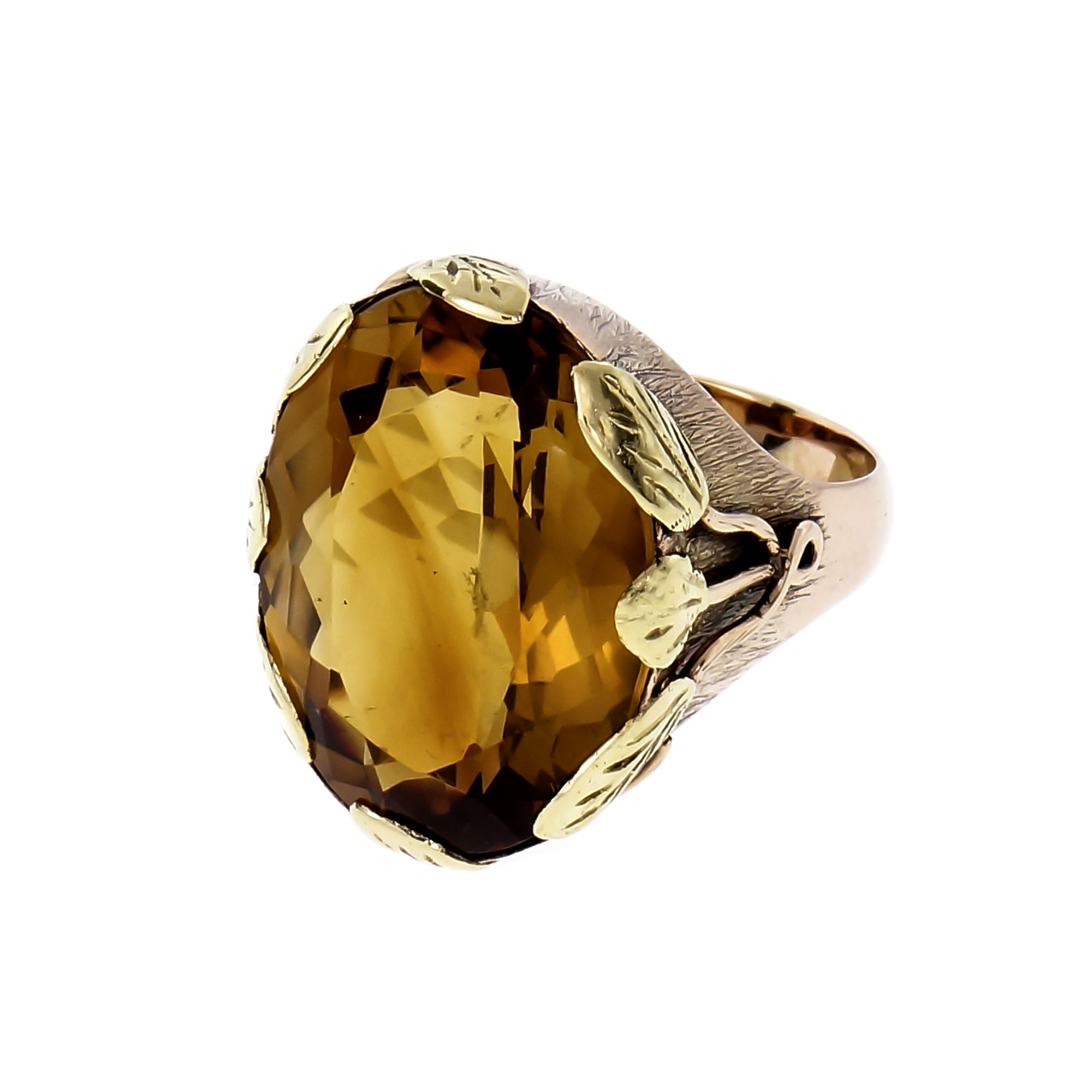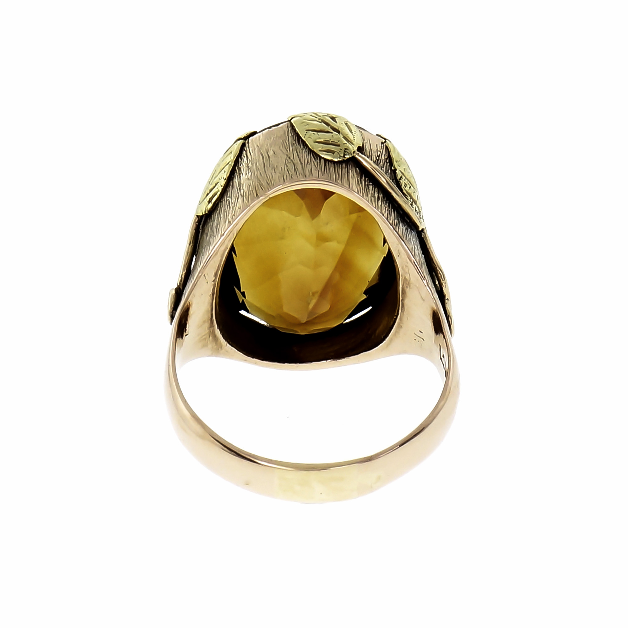 Vintage 1900 Art Nouveau Citrine Ring 14k Rose & Green Gold