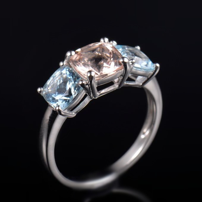 | CENTER STONE | Gem Type: Natural Morganite/Aquamarine Number of Gemstone(s): 3 pieces Size(MM): 8.0 LENGTH. 6.0 WIDTH 6.0 LENGTH. 6.0 WIDTH Stone Weight: 3.05 cts Shape: Cushion Cut Color: Pink/Blue Treatment Method: No Treated |