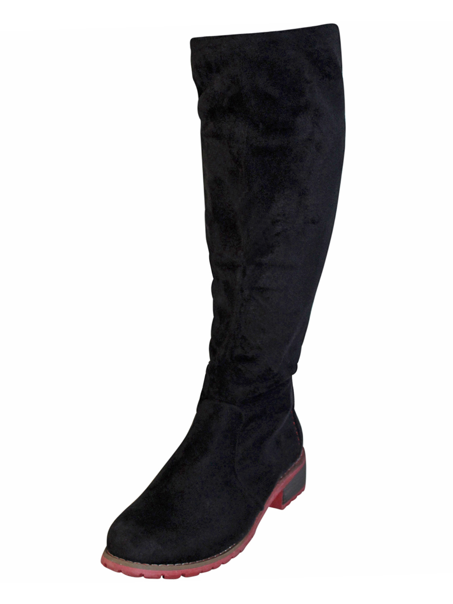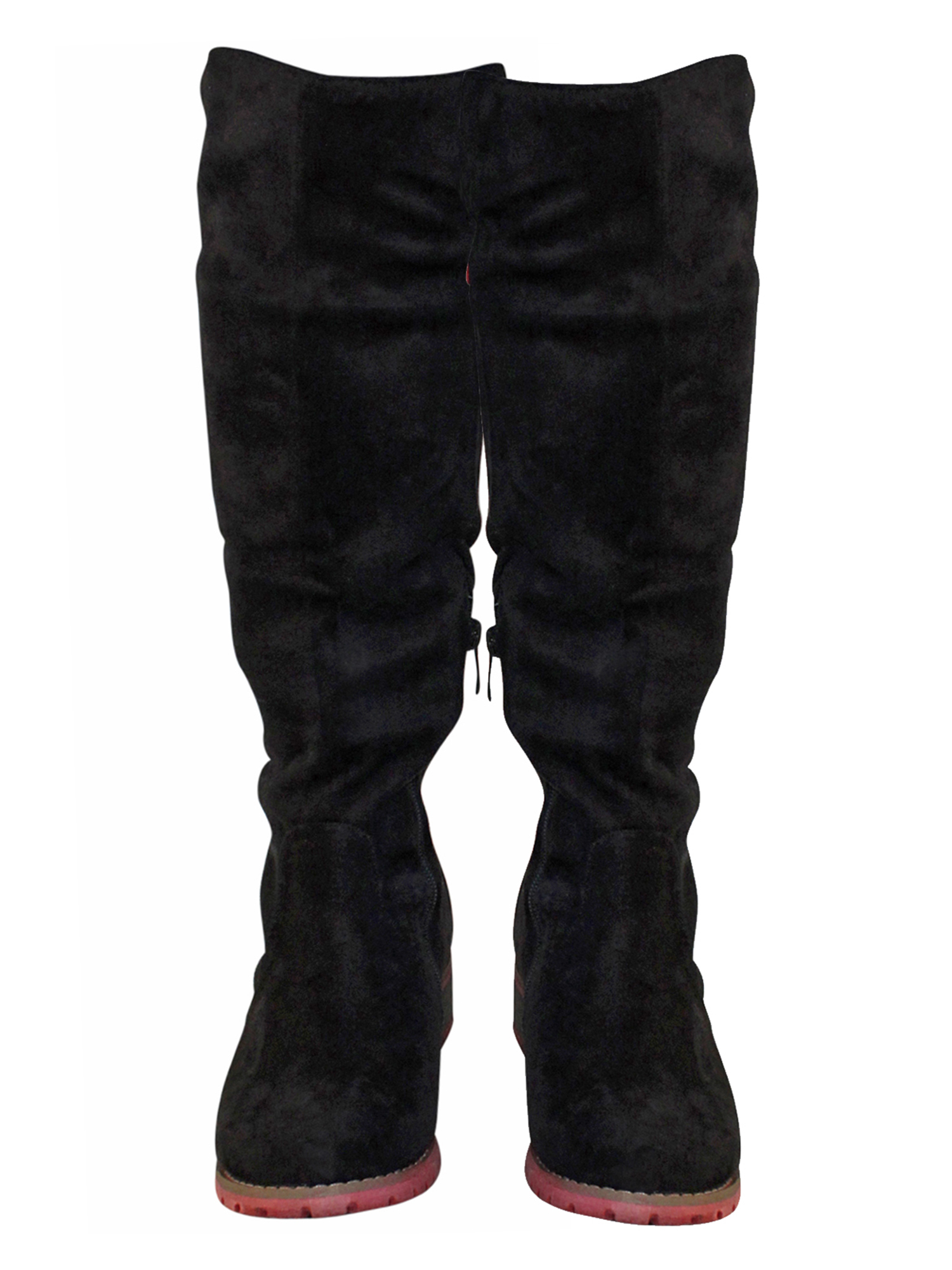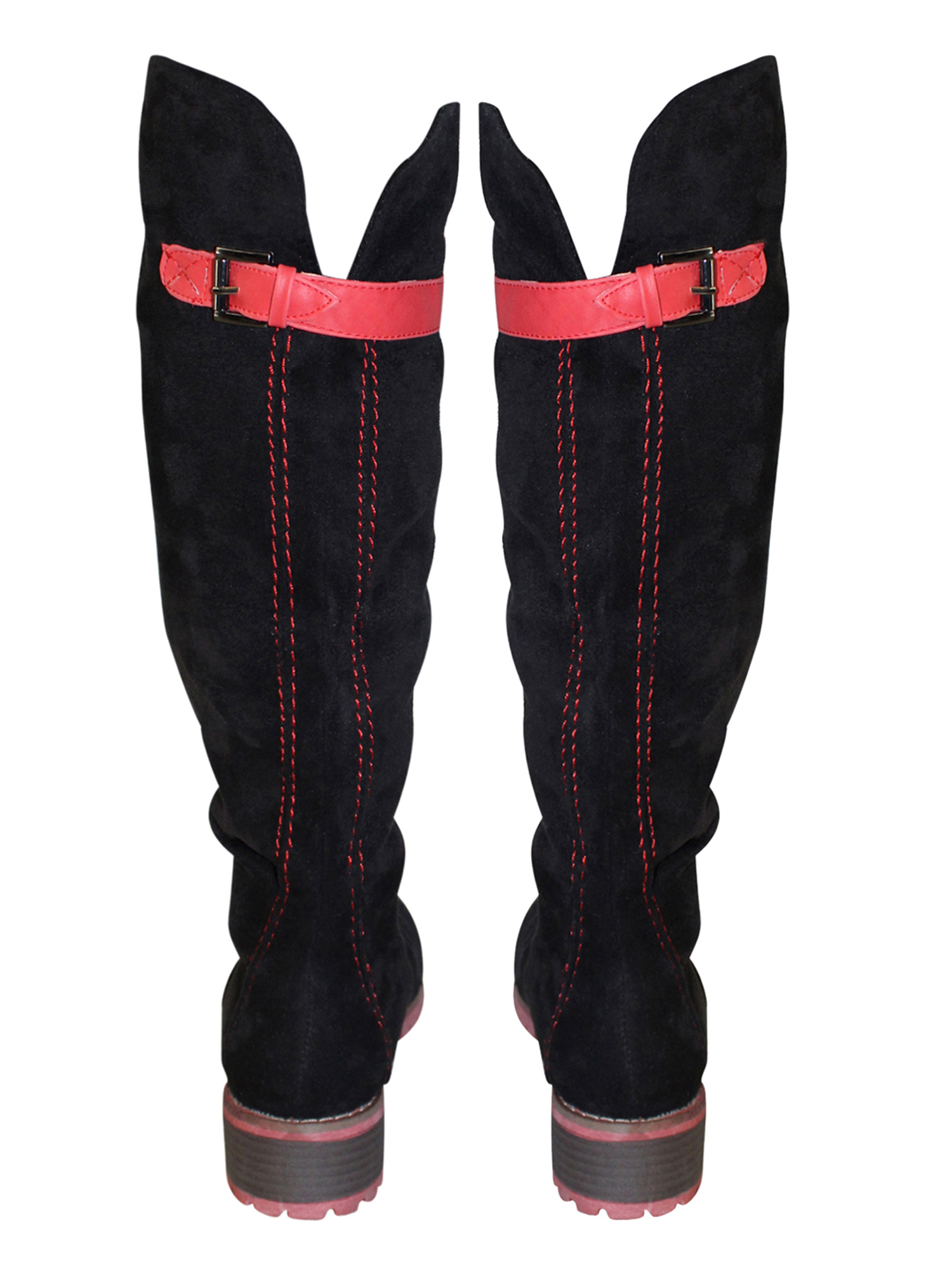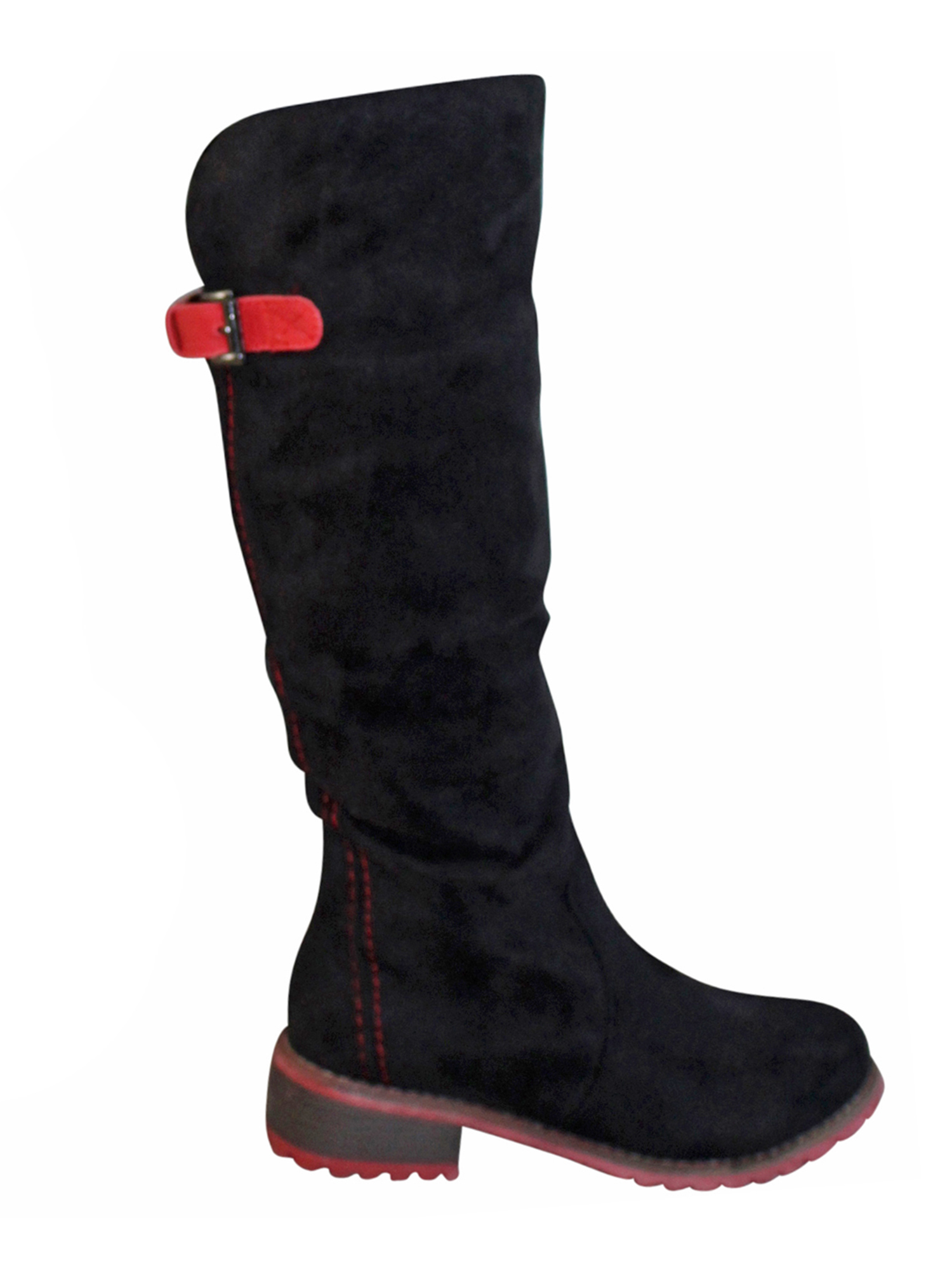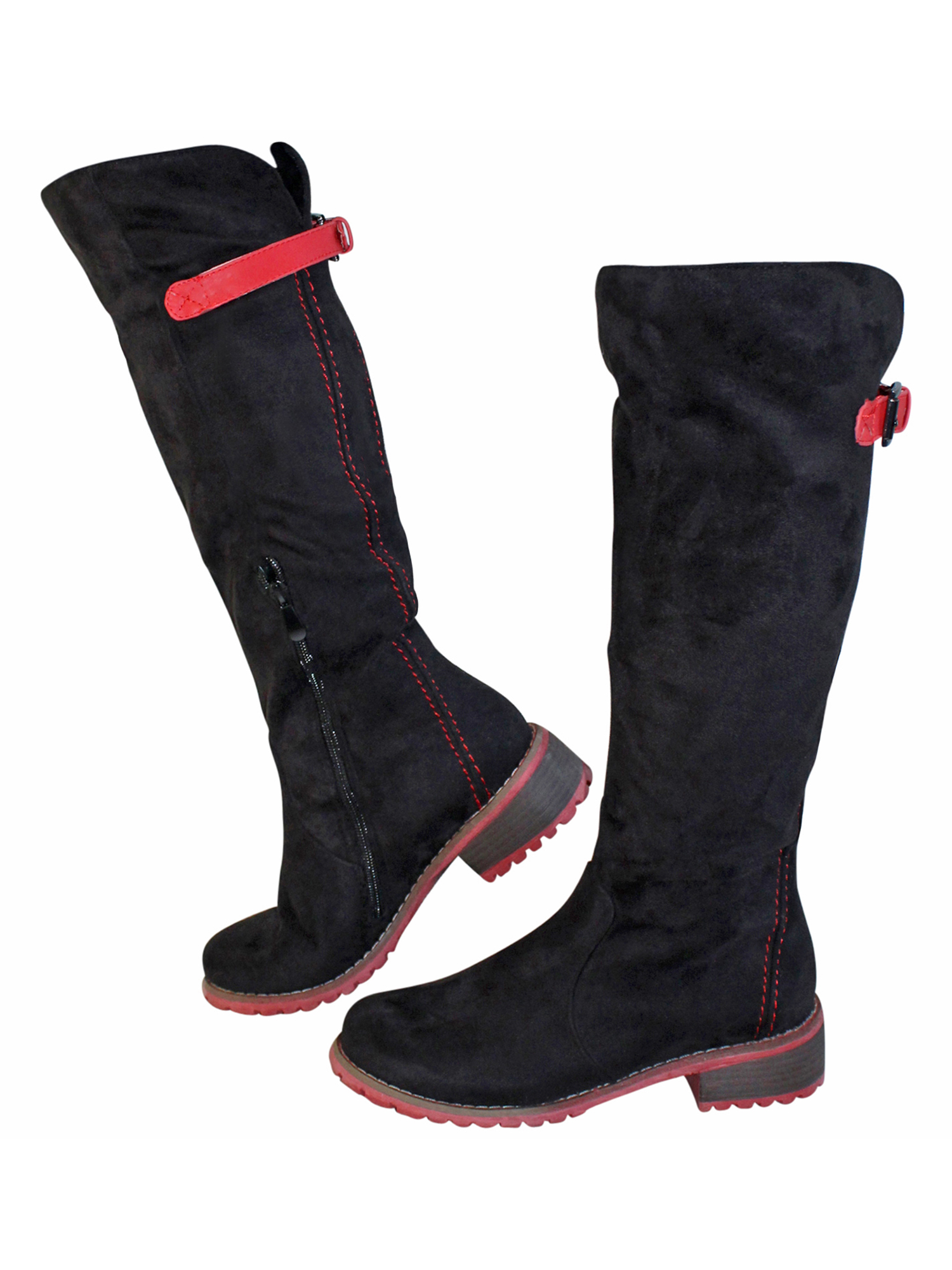 These knee high boots have a decorative and adjustable calf strap in the back for added comfort.