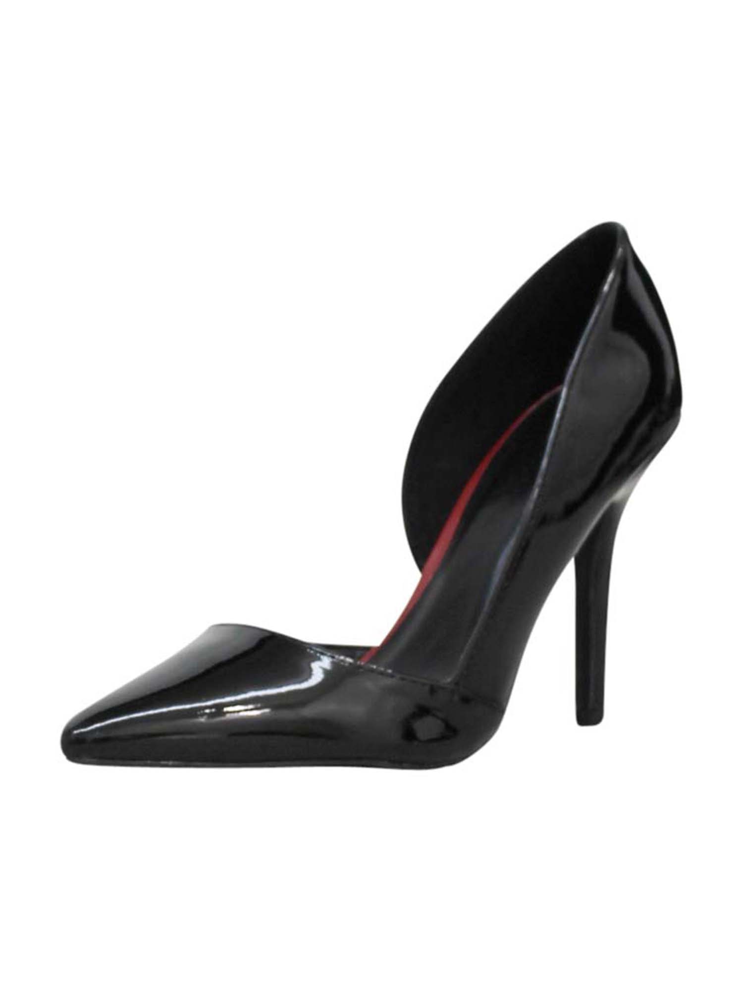 These womens high heels are constructed with a smooth faux patent leather exterior and an outline stitch.