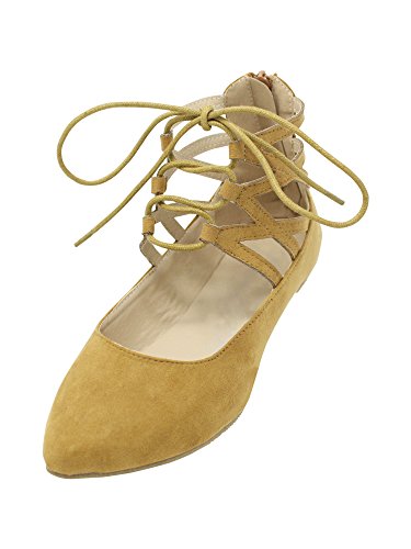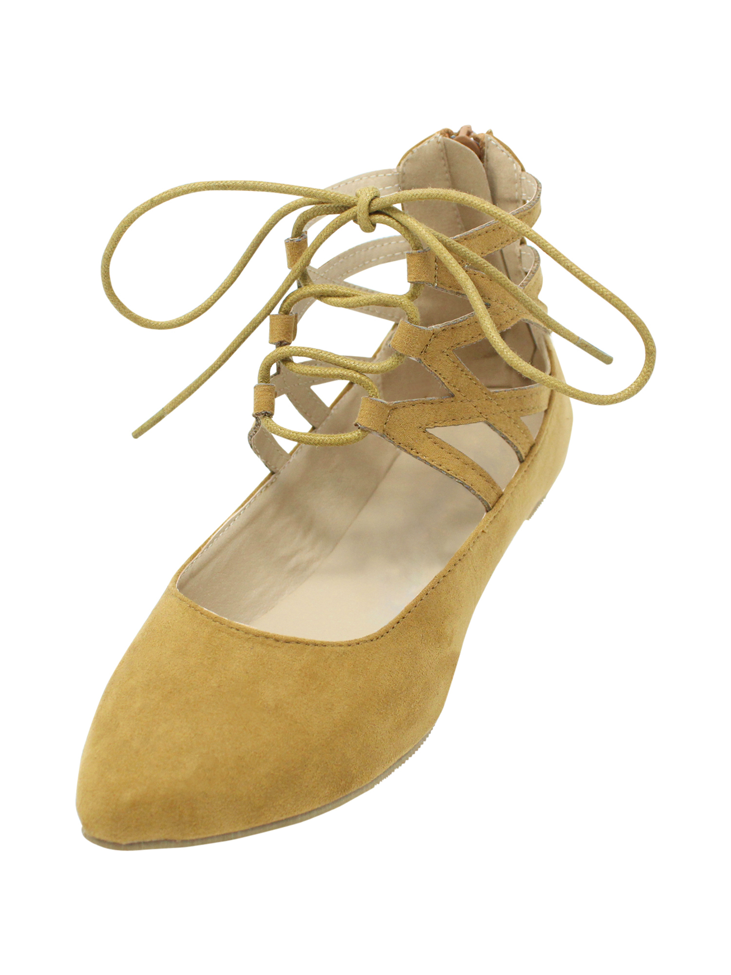 Wraparound tie closure makes for added comfort and custom sizing of these womens ballet flats.