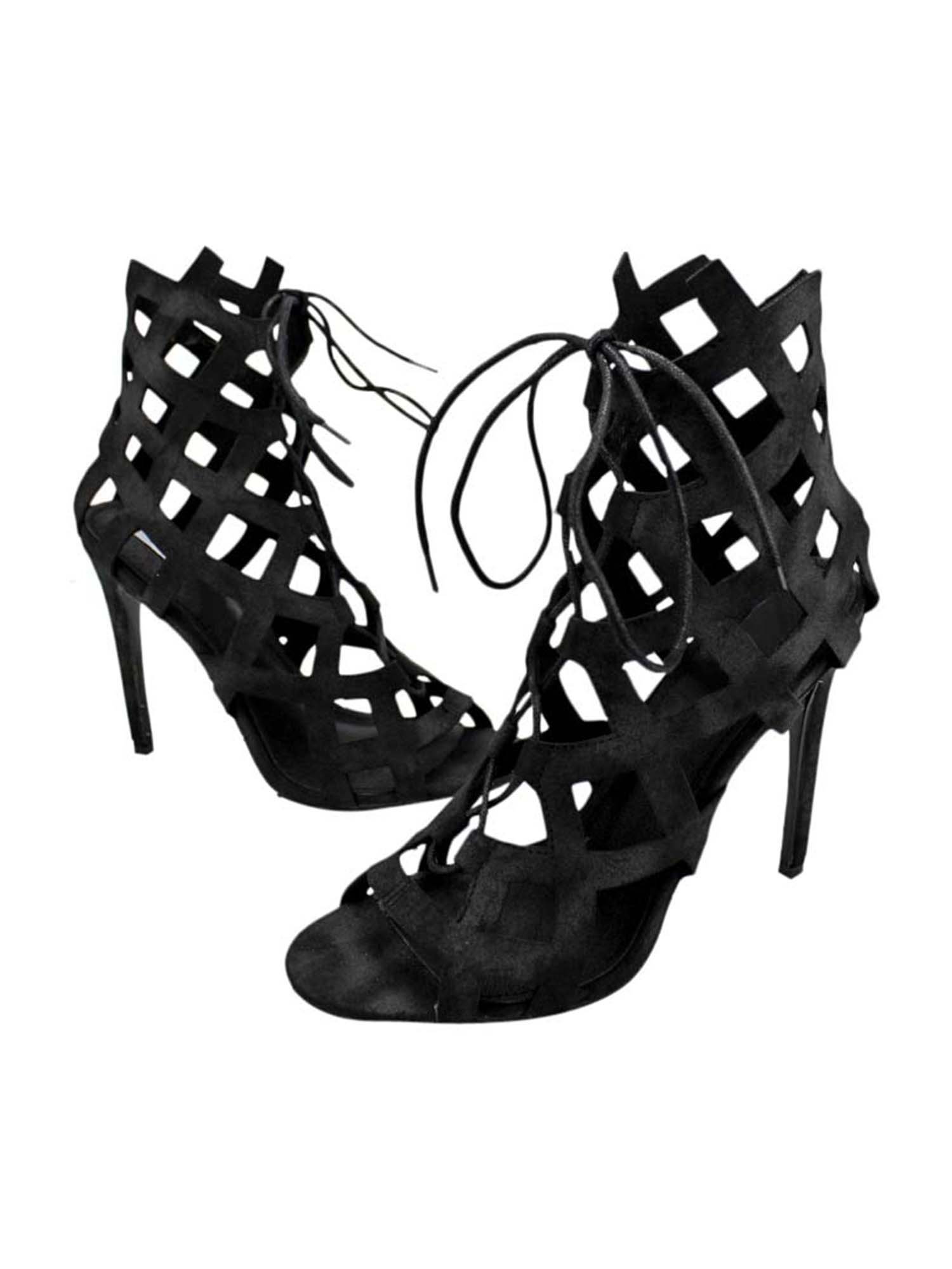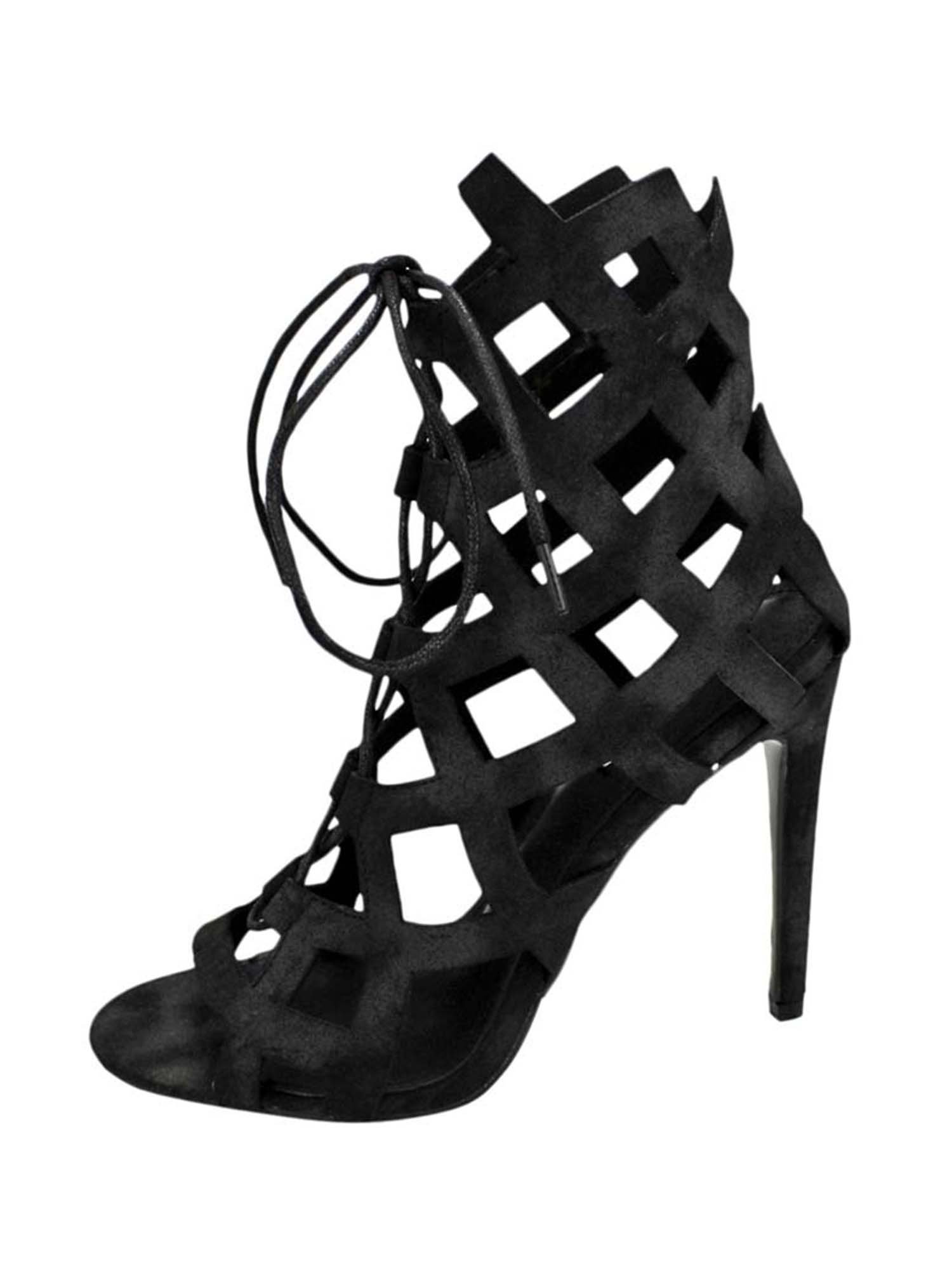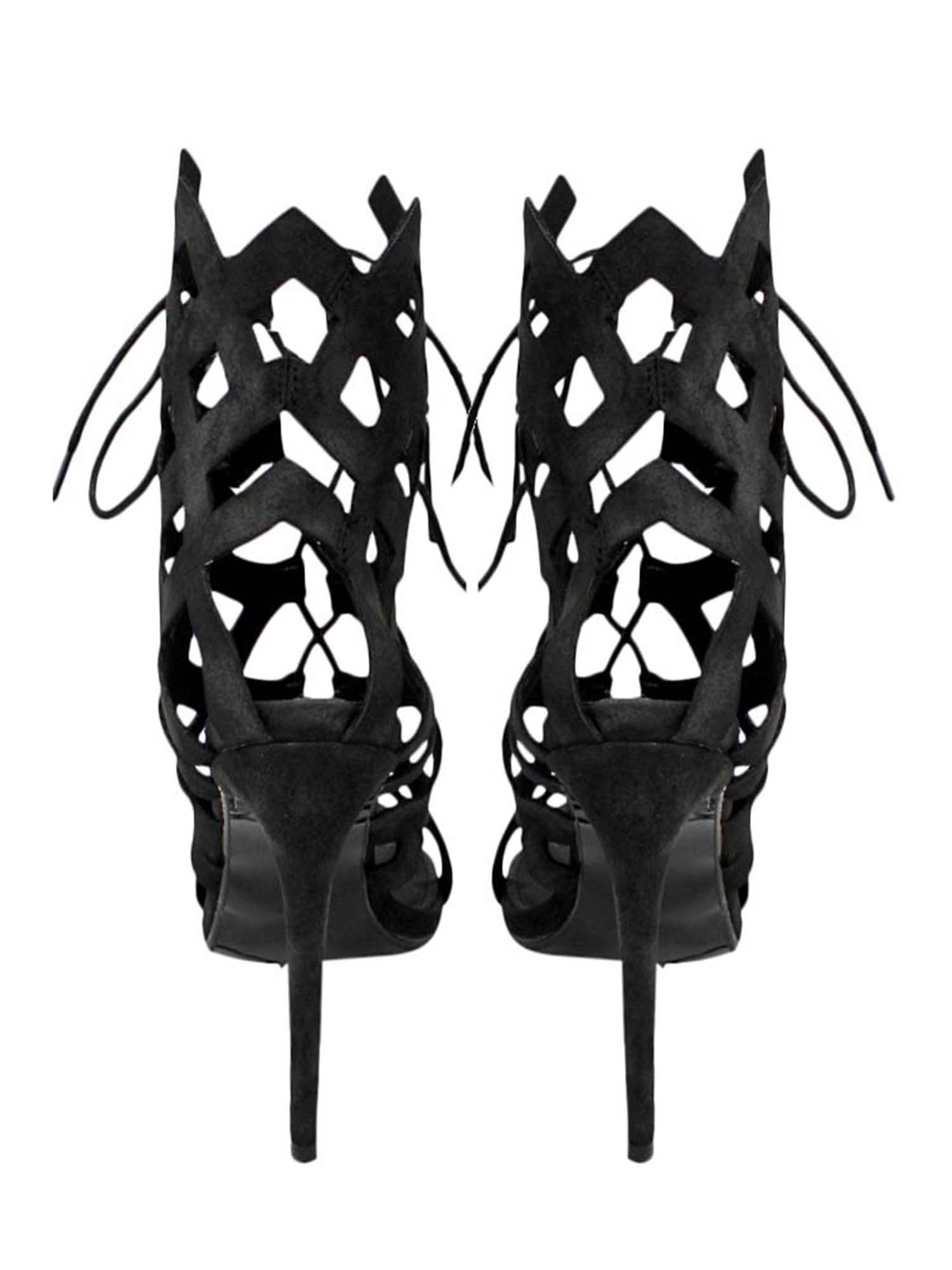 These caged style sandal high heels soar high in chic fashion.