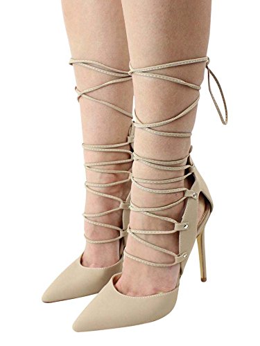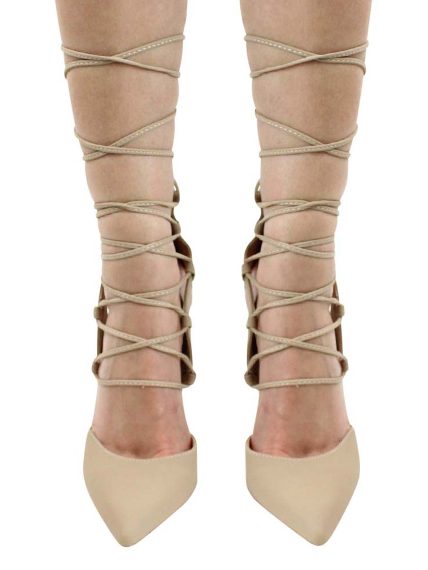 Lace these high heel pumps up your calf or low around the ankle for a completely different look.