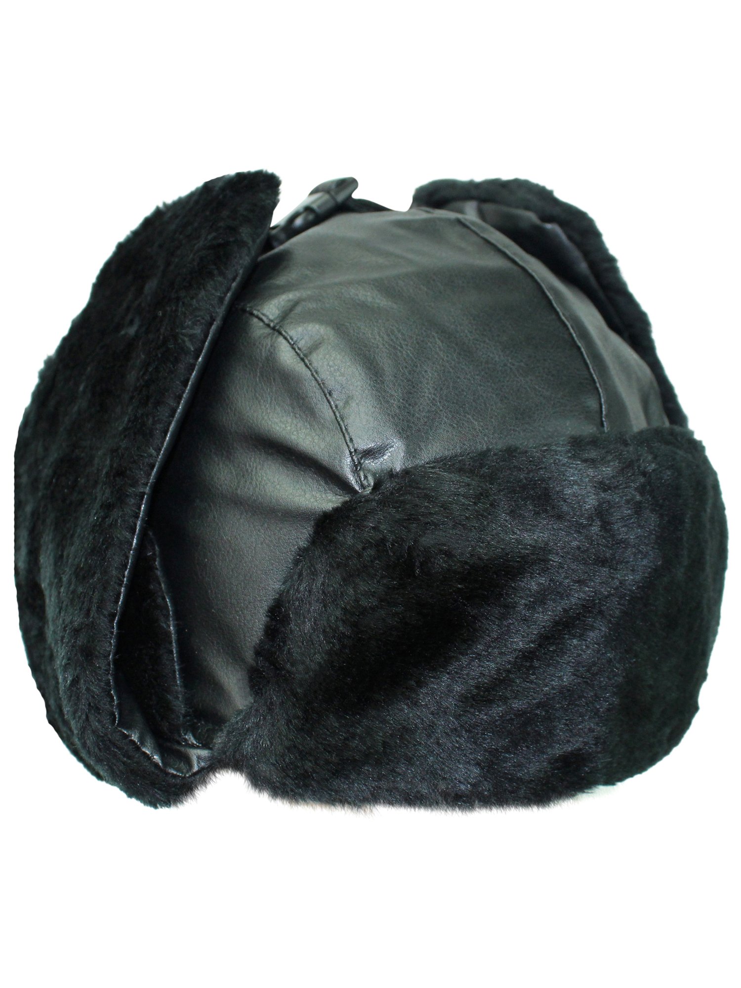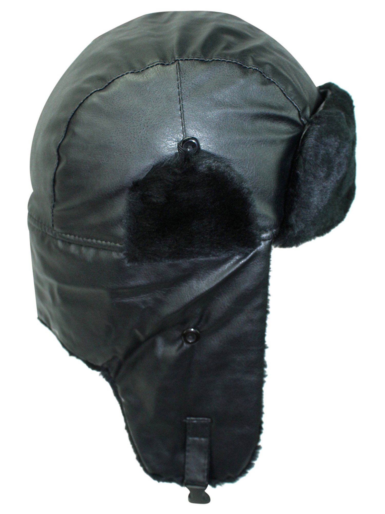 The solid color faux leather exterior of this aviator hat makes it easy to coordinate and fashionable for both men and women.