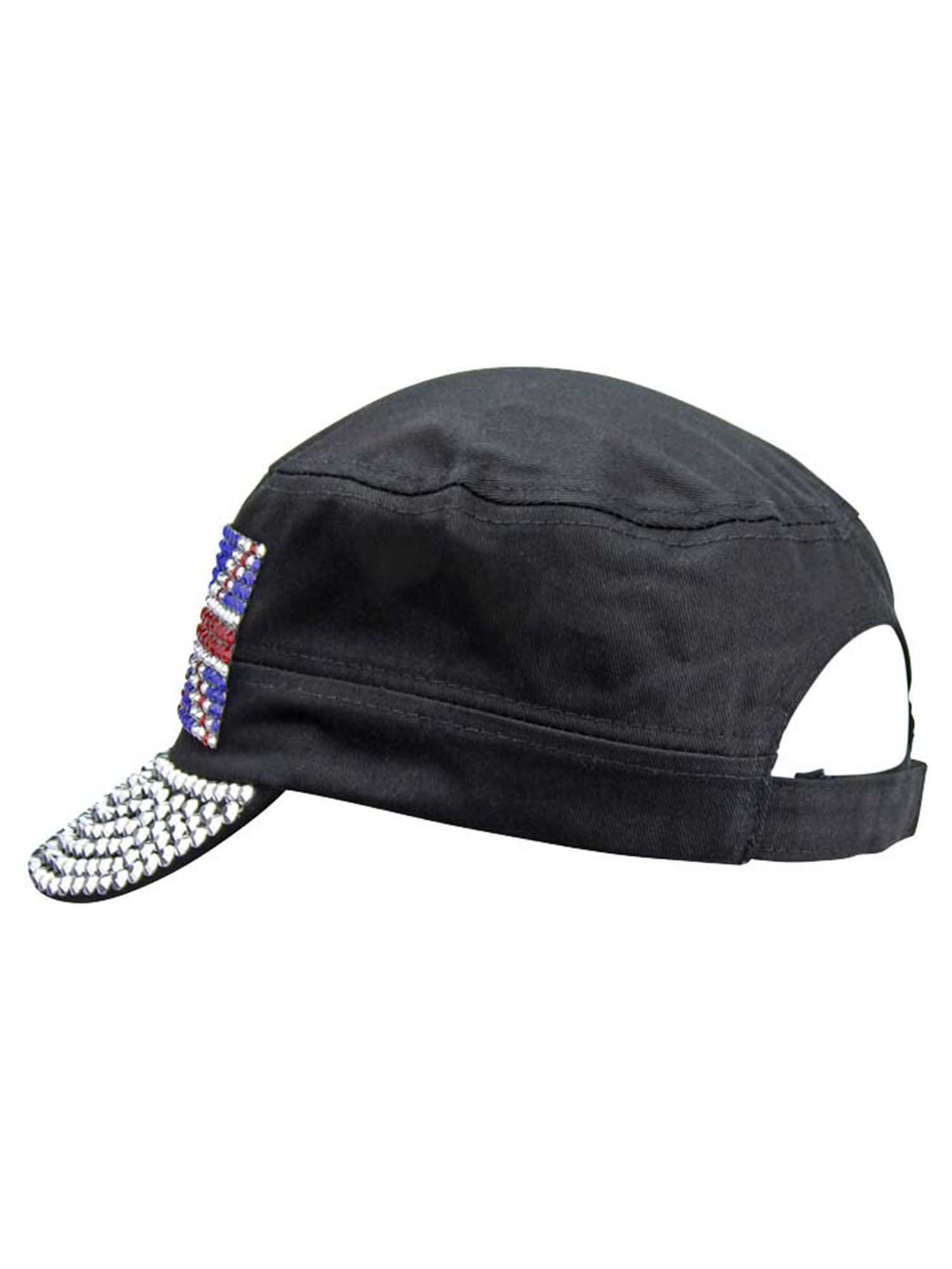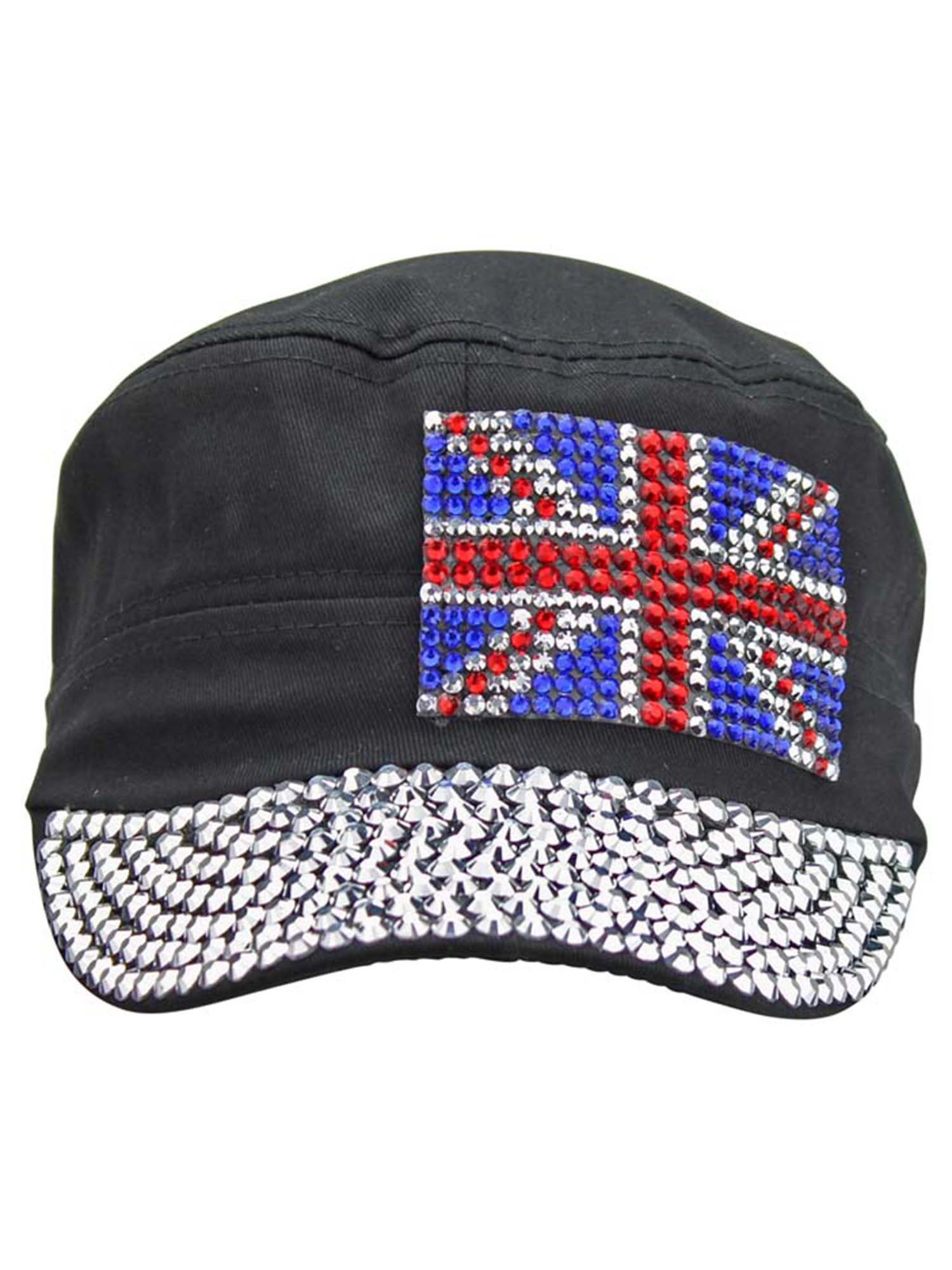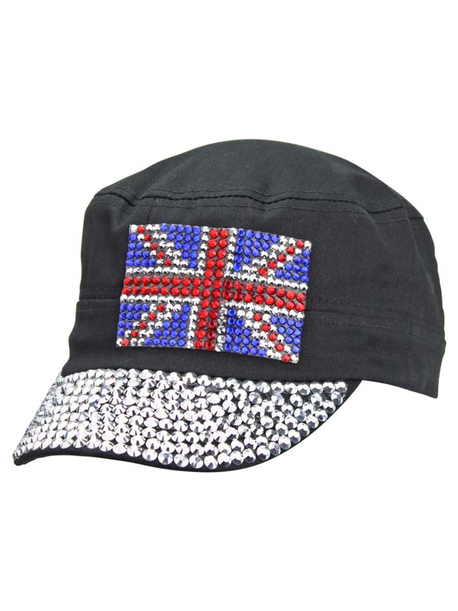 This cadet cap has a rear keyhole and fully rhinestone studded brim.