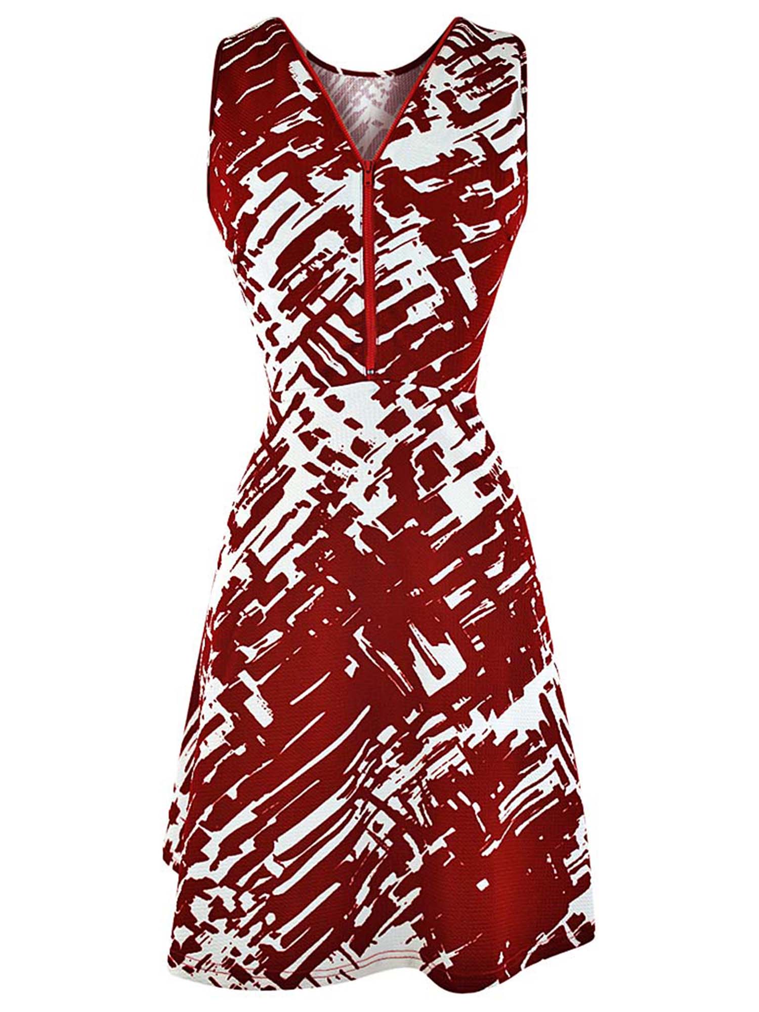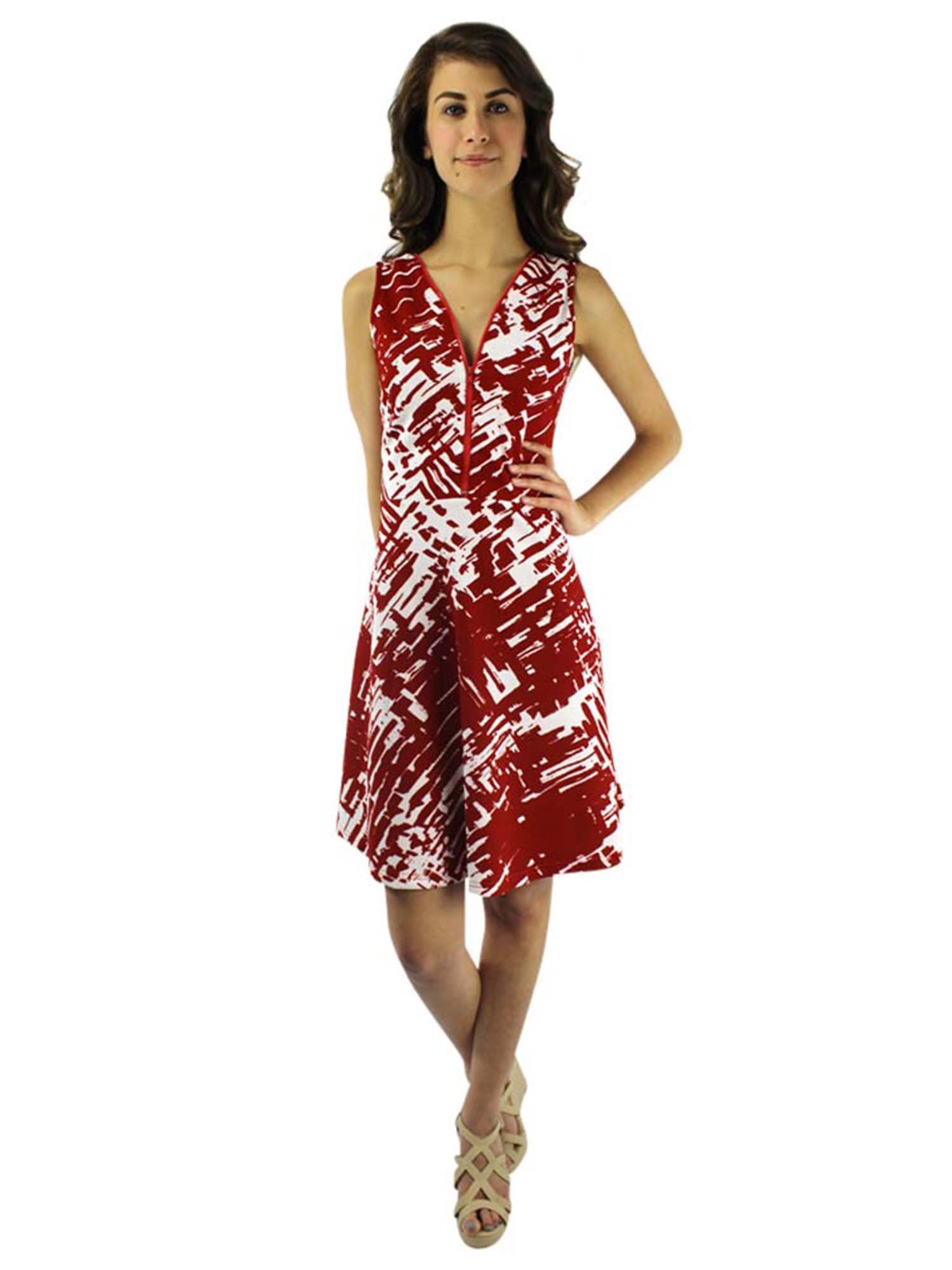 The v-neckline of this sleeveless dress is lined with a faux zipper.