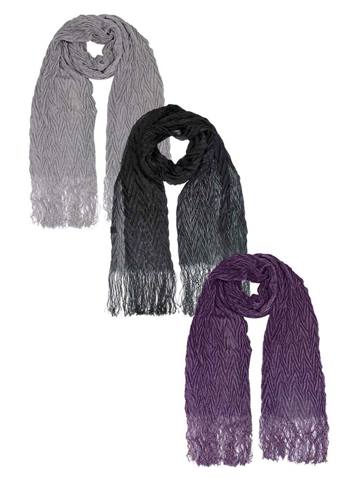 Classy, cool and lightweight, these shawls can be worn all year long. This metallic scarf 3 pack includes one of each of the scarves shown.