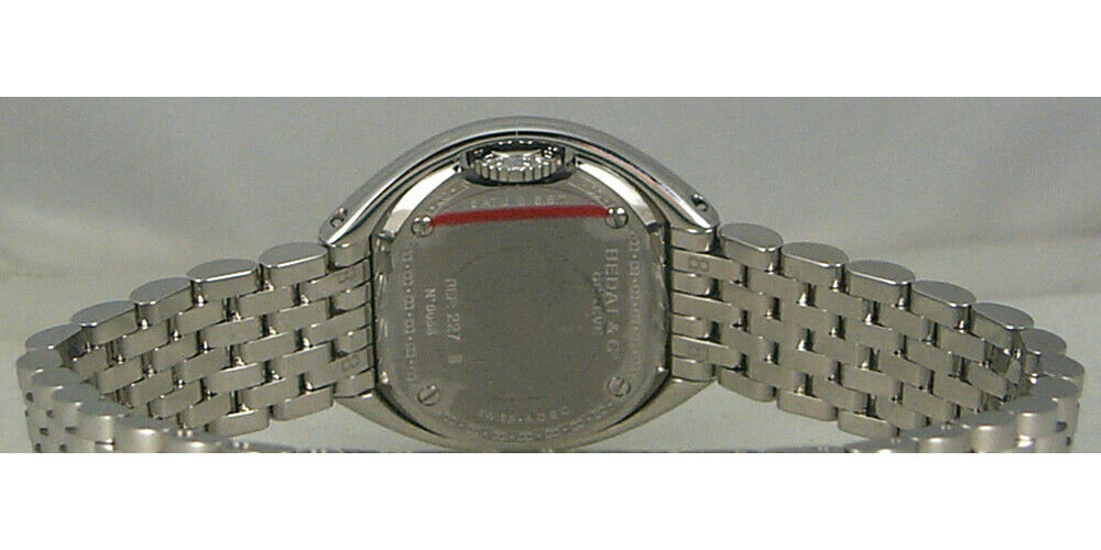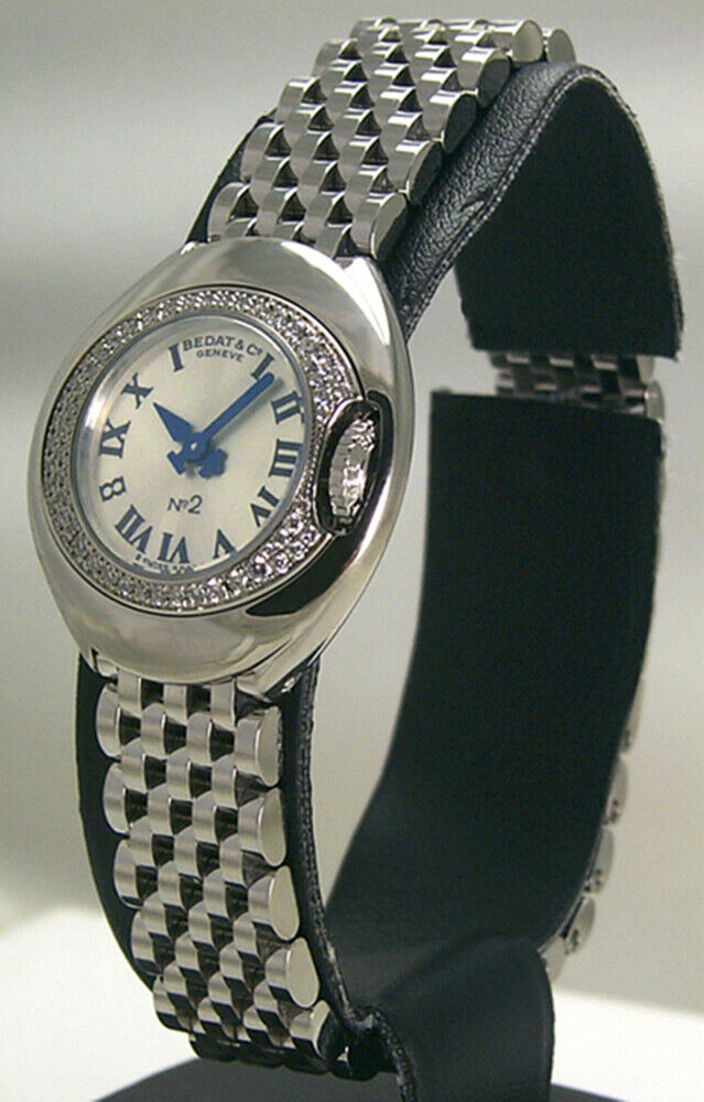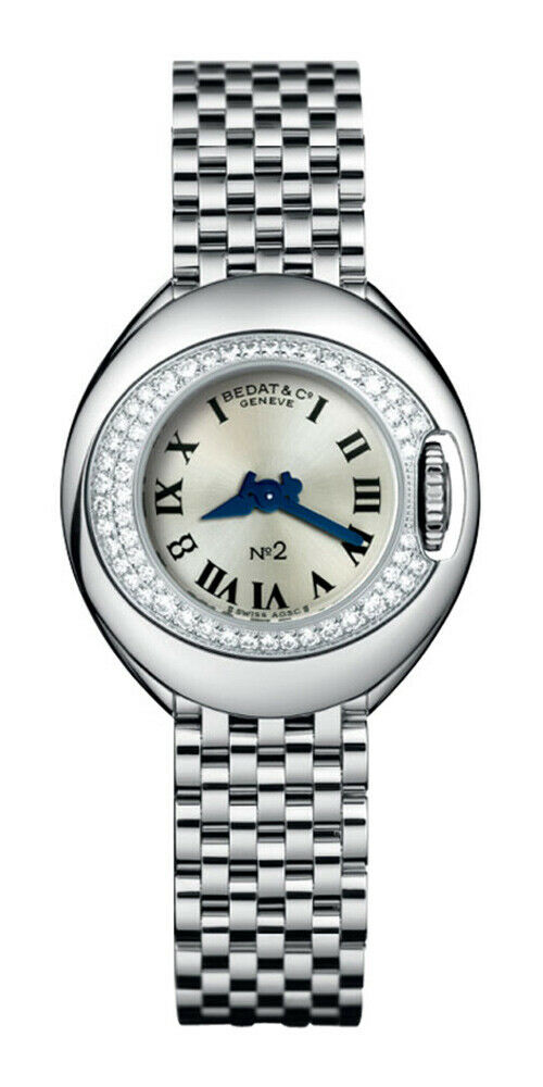 This magnificent Bedat & Co. No. 2 Stainless Steel & Diamond Ladies Luxury Watch Model # 306.333.109 / 306-333-109 will make a perfect gift, or a great addition to your collection. A Bedat No. 2 Swiss timepiece especially designed to be majestic and precise in movement. A sophisticated stainless steel and diamond ladies watch created to rest elegantly around the wrist features a handsome Silver sunburst dial set with blued steel hand indicators, Black Roman Numeral hour markers. Presented in a luxurious Polished stainless steel case and Bedat's signature 'Mille mailles' Bracelet - An extremely comfortable wear, Inner bezel set with 59 diamonds (approximately 0.52 carats), A superior Scratch Resistant Sapphire Crystal protects the dial, Stainless Steel Solid Case back, Precise Swiss Quartz movement, Water resistant to 50 meters/165 feet. As all of our other watches, this Bedat No.2 ladies watch is brand new and comes with the original box, warranty card and papers!