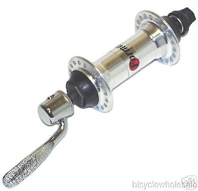 This Formula Alloy Quick Release 36 Hole Front Hub With Skewer is a 36 hole 100mm O.L.D. alloy front hub that can be used in many different applications. It has a high quality silver finish and comes with a quick release skewer.