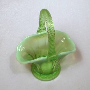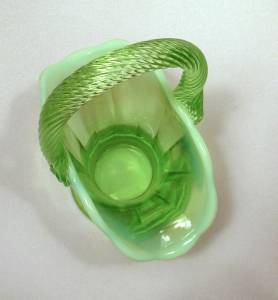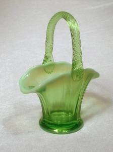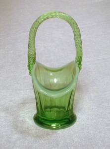 Details of the green glass basket are:
