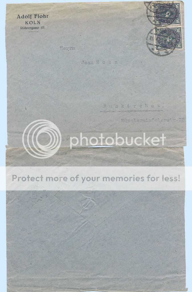 This auction is for an Germany 1923 Adolf Flohr, Koln, corner advertising inflation era cover with Scott # 184 x2 (pair) to Euskirchen - scarce cover with hard to find stamps on cover...great rate cover to study - Scarce, don't miss this one. Free shipping to US locations - Low opening bid...have fun.