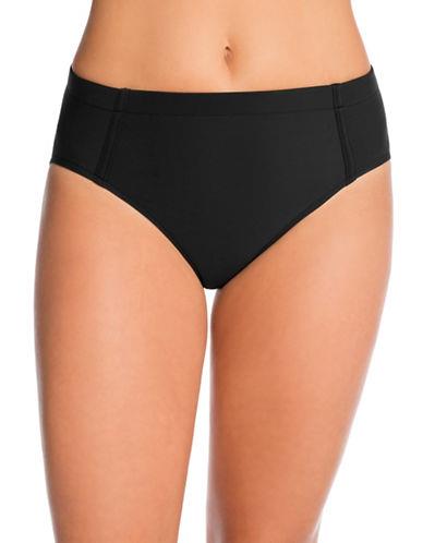 A sleek swim look begins with these solid bikini bottoms from Swim Solutions, a classic silhouette with tummy control that helps smooth your silhouette.