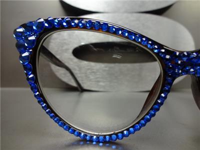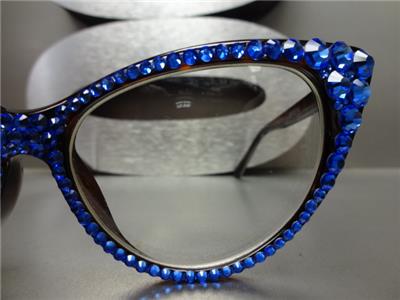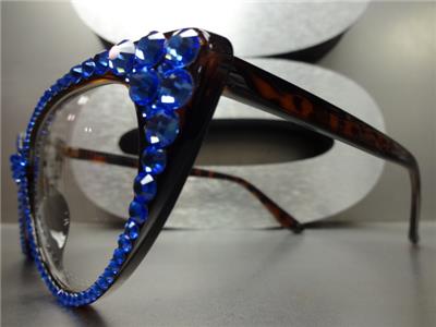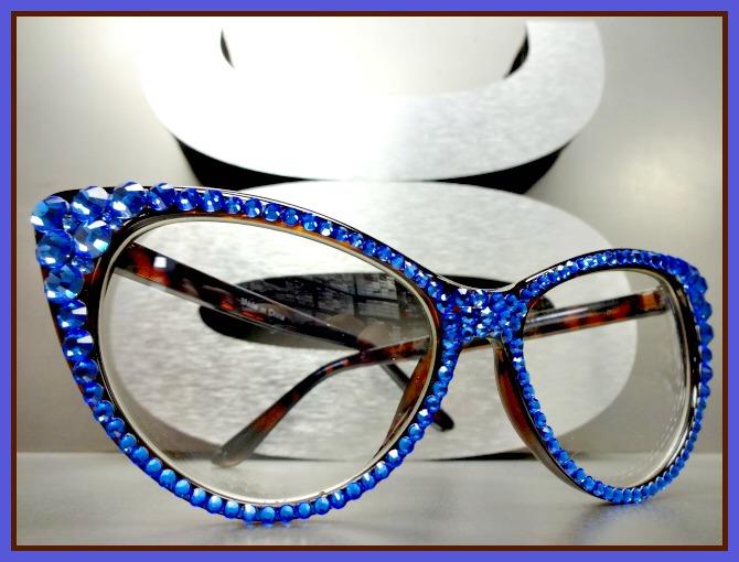 - FRAME COLOR: Tortoise Frame Bedazzled with Sparkling Sapphire Color Crystals (CUSTOM MADE: Each Crystal is Placed by Hand with Precision Craftsmanship)