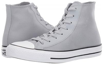 Chuck Taylor Ballistic Nylon Grey Lined Hightops. Contrast grey leather accents. DISCONTINUED design. Men's size 11.