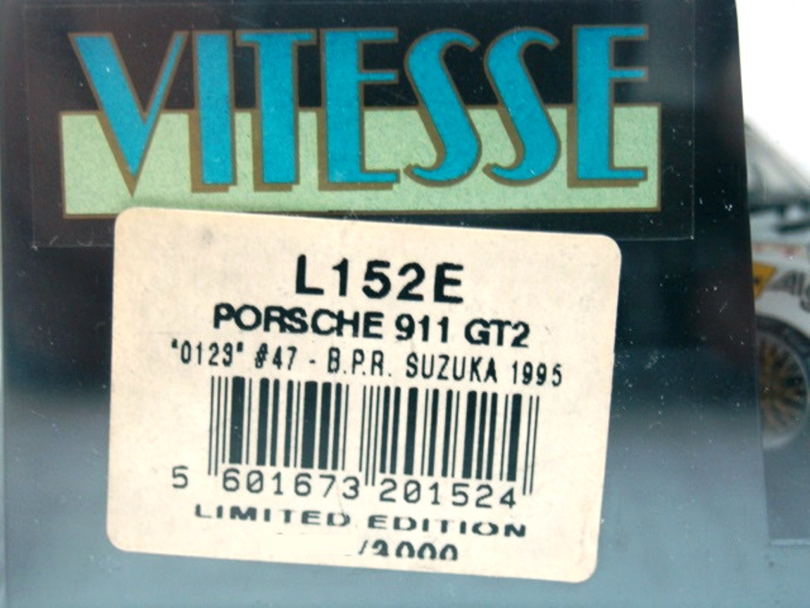 MIB-Untouched-Virgin-OVP-Unberührt!!!! Only GBP 11 Shipping to European Union, Norway & Schweiz!!!! Only GBP 11 Shipping to the Rest of the World!!! After 20 years of storage it's up for sale!!!! Zero customs fees. No hidden charges at the checkout. We ship the item worldwide as a used toy/ gift without any declared value. You will not pay extra money for du ties and taxes in your country. Nor a penny.- 1:43 Vitesse L152E Porsche 911 (993) GT2 Evo 2 Twin Turbo Chassis #WPOZZZ99ZT S393104 3.6L F6 12V 600HP 0123 #47*Team Larbre Competition**Stéphane Ortelli Jürgen Barth/Dominique Dupuy*1000 km Suzuka on August 27th, 1995*BPR Global GT Endurance Series (rnd 9)**Limited Edition to 3000 pcs Worldwide* No scratches or marks on the plastic case or on clear case*with original outer paper box**Wow!!! Wow!!! Again Wow!!! Wow Extremely Rare!!! B.P.R. are first letters of Jürgen Barth, Patrick Peter and Stéphane Ratel - founders of this series for GT cars. In 1994 the base of starting field were cars from Porsche Supercup and Venturi Trophy running against single Ferrari F40,, but early interest about the series that had filled up the blank space after cancelling World Champion ship, increased and many new competitors appeared. This championship was trans ferred to FIA GT championship in 1997 when big manufacturers paid their attention to GT racing. The model has been discontinued for many years & now is Extremely Rare. It's Mint Brand New with original packaging, Untouched, Sealed from the Factory.- Partial Refund Scammers Stay Away!!!! I've checked the Model. It's 100% Perfect!!!! Sealed from the Factory. I photograph the Models before packing.No Partial Refunds will be Accepted. Sorry about that but I have been a Victim of these Scammers many times in the past.