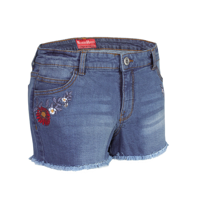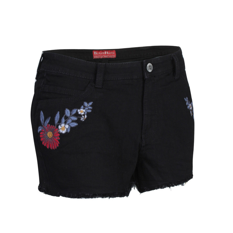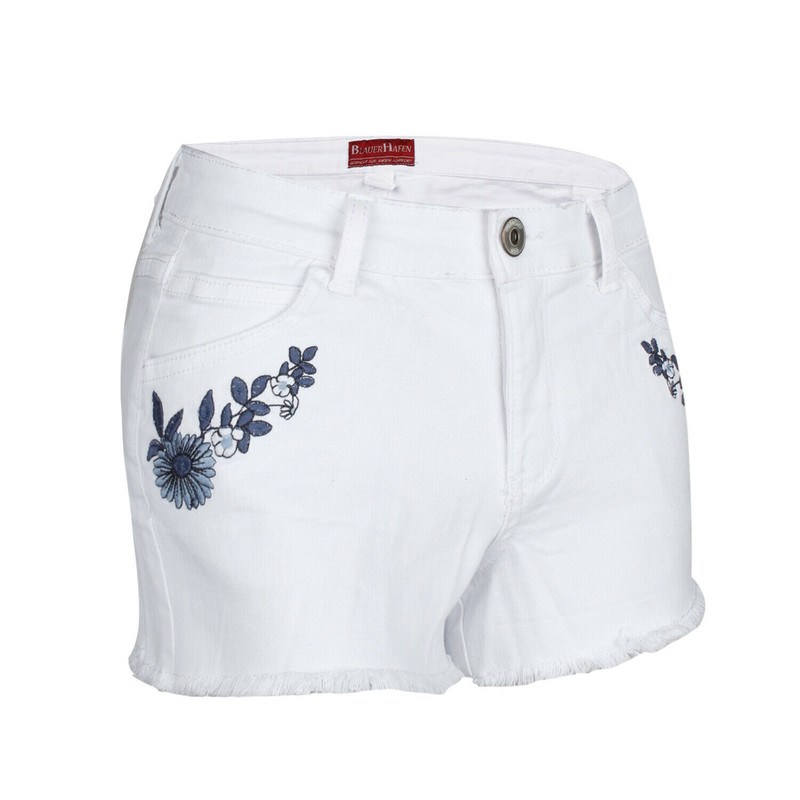 Ladies Denim Shorts Stretchy Hot Pants Embroidered Distressed Jeans Short