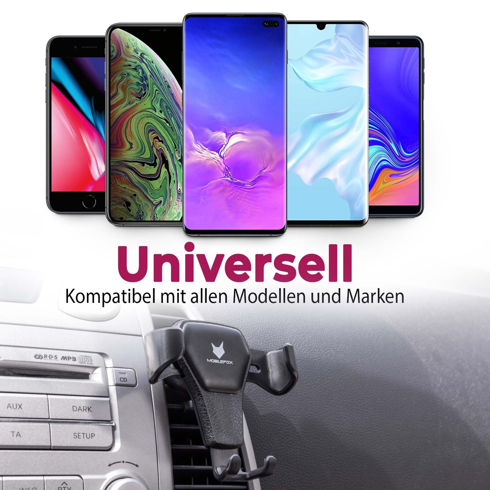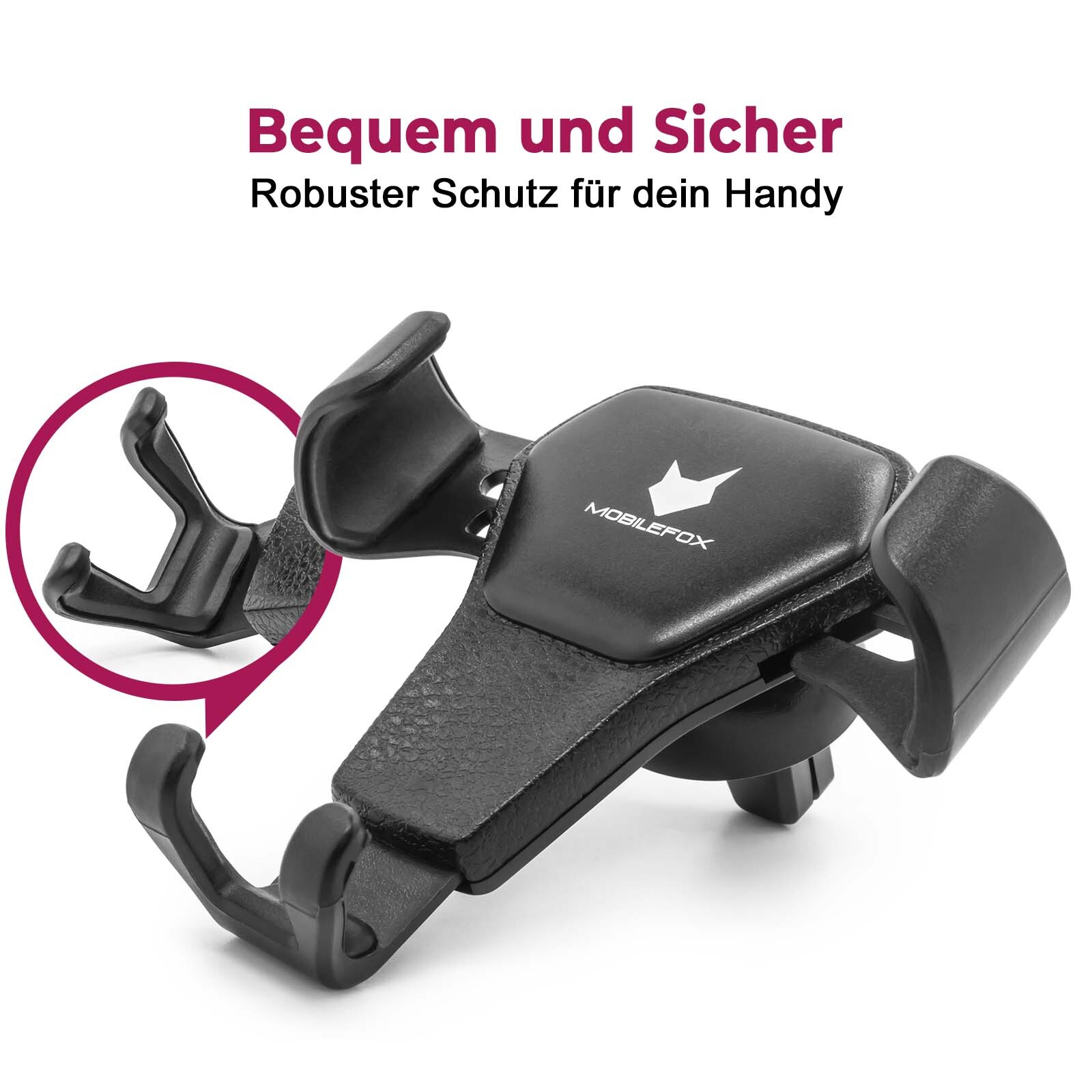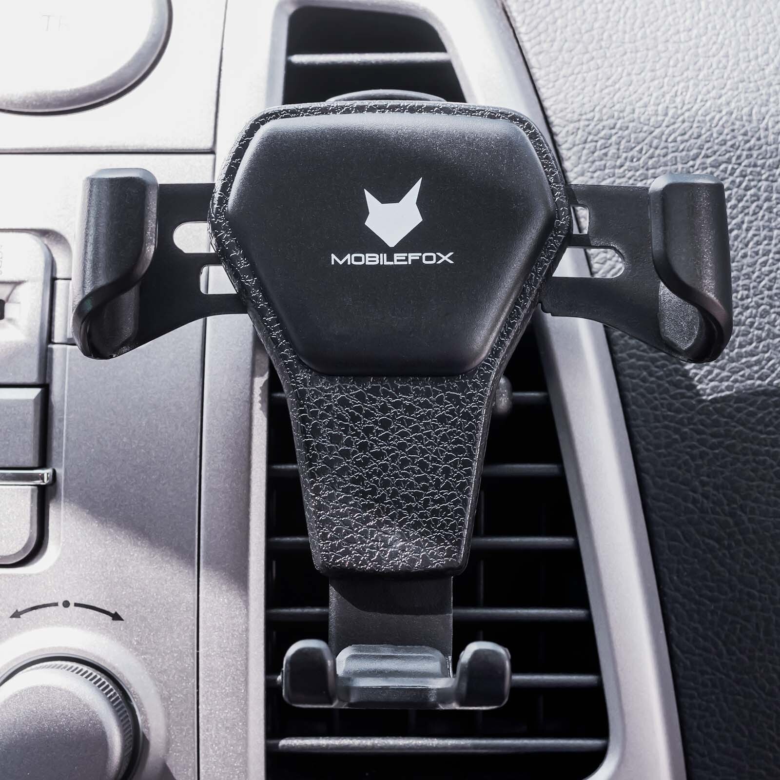 Avec le simple mais élégant Support de fente d'aération Mobilefox Vous pouvez toujours garder un œil sur votre smartphone, même en conduisant. Vous en recevrez un stable et de haute qualité Support pour votre smartphone.