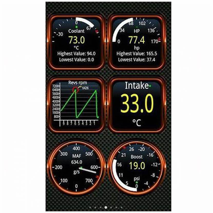 - Anzeige von Live-Daten wie: Motordrehzahl; Kühlmitteltemperatur; Geschwindigkeit; Luftmengenstrom; Lambda-Wert; Kraftstoffdruck u. v. m.