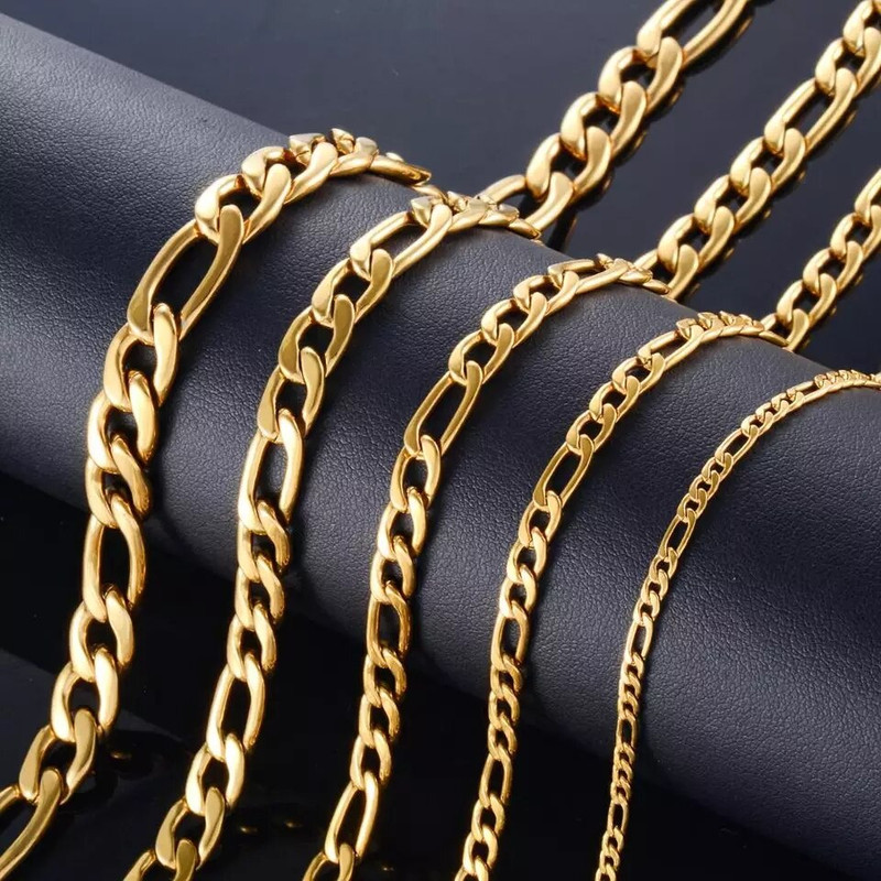 This 18K Gold Plated Stainless Steel Figaro chain is very smooth and comfortable to wear alone or embellished with a pendant. It is high quality and was made from Genuine 316L Stainless Steel. The 316L Stainless Steel is the best stainless steel to make jewelry. It is a strong and durable metal, very smooth, shiny, and easy to take care of. It's perfect for sensitive skin because it is hypoallergenic and safe to use. With proper care and use, our chains will last for years!