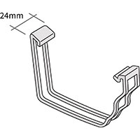 Brackets should be fitted with a maximum of 750mm centres, and no more than 200mm from each corner or union. To fit the brackets, position the body of the bracket where you would like it to be on the eaves, hook over the lower rail and pivot the arm of the bracket upwards until the top of the body snaps into place.