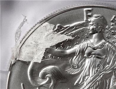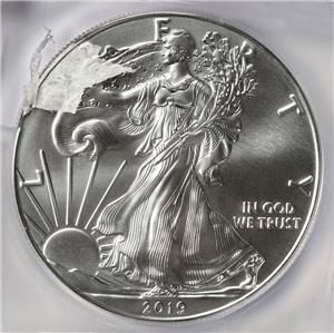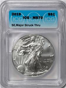 2019 ICG MS70 Huge Struck Thru Retained Plastic Silver Eagle Dollar Mint Error
