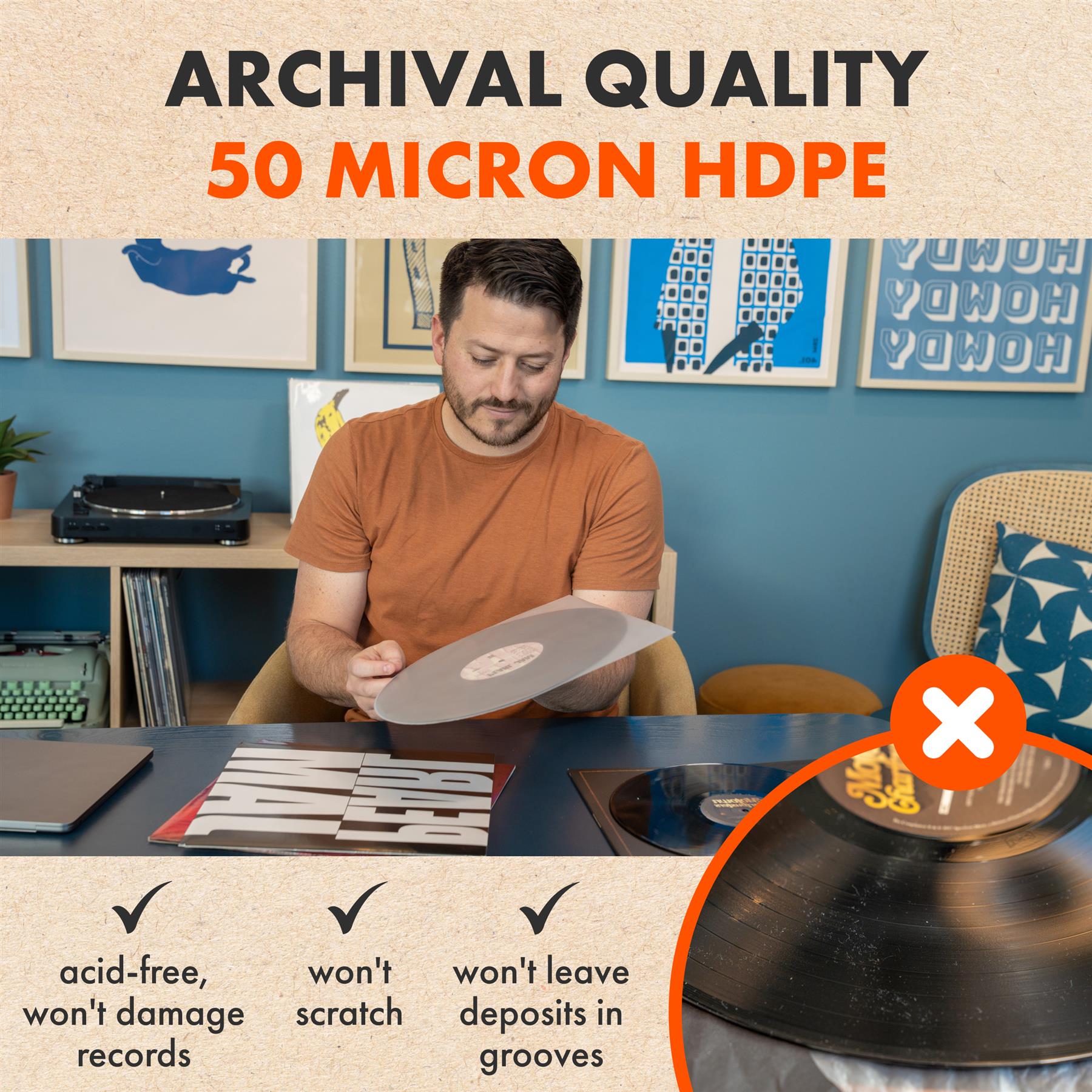 Made from high-quality HDPE, these record sleeves offer a high quality yet affordable replacement for paper sleeves and a superb accompaniment for cardboard inner sleeves;