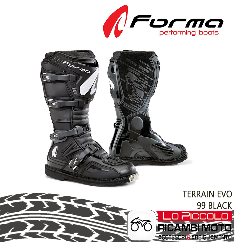 STIVALE TERRAIN EVO ENDUROIl marchio Forma nasce nel 1999 da Ivano Binotto ad Altivole ( Treviso)in Italia che viene definito come il cuore delle scarpe sportive al mondo.In questa realtà non è difficile raccogliere i materiali adeguati e trovare soprattuttopersone eccellenti che abbiano acquisito elevate competenzeper realizzare prodotti tecnici di alta qualità.Tutte queste attività hanno reso questa parte del mondo, particolarmente indicataper la produzione di questi fantastici stivali da moto.L’ azienda vanta ben 25 anni di know-how ed esperienza nella costruzione di stivali da moto e attualmente il marchio Forma è venduto in più di 60 paesi nel mondo con una retedi distribuzione più che consolidata.Il marchio Forma è ora riconosciuto come uno dei marchi più innovativi del settore stivale da moto.Massima attenzione viene data alla sicurezza .Quasi tutta la gamma è approvata CE EN 13634 : 2010/12 da parte del principale istituto di test italiano e Centro di ricerca Ricotest.CARATTERISTICHE PRODOTTO:EsternoTomaia in pelle e materiale sinteticoSuola mx con mescola dedicataProtezioni in plastica iniettate e sagomateParamarmitta personalizzato in pelle scamosciataChiusura con velcro regolabileChiusura con leve GH in plastica regolabili e sostituibiliPuntale in acciaioInternoFodera in materiale imbottitoRinforzi in poliuretanoImbottiture con memoriaSottopiede I.S.S. (Incorporated Steel Shank) ricoperto in feltro anti-shockSoletta antibatterica sostituibile con A.P.S. (Air Pump System)Misure Disponibili:38-39-40-41-42-43-44-45-46-47-48BLACK/YELLOW FLUO